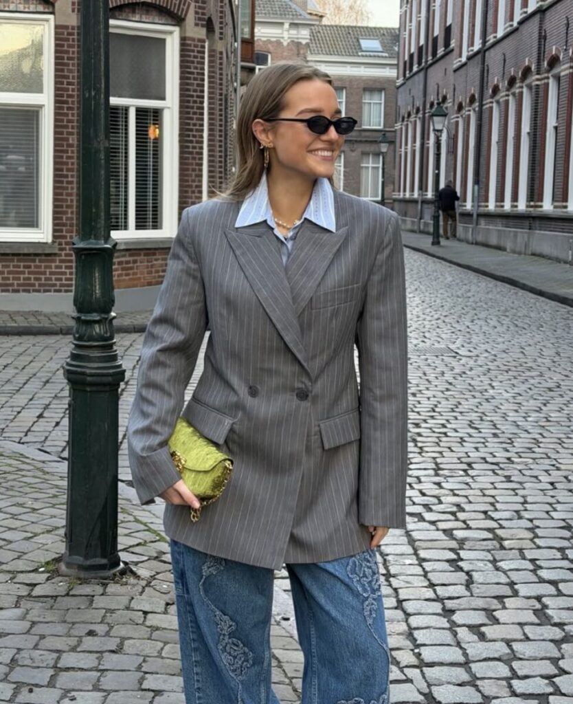 De blazer valt op maat.