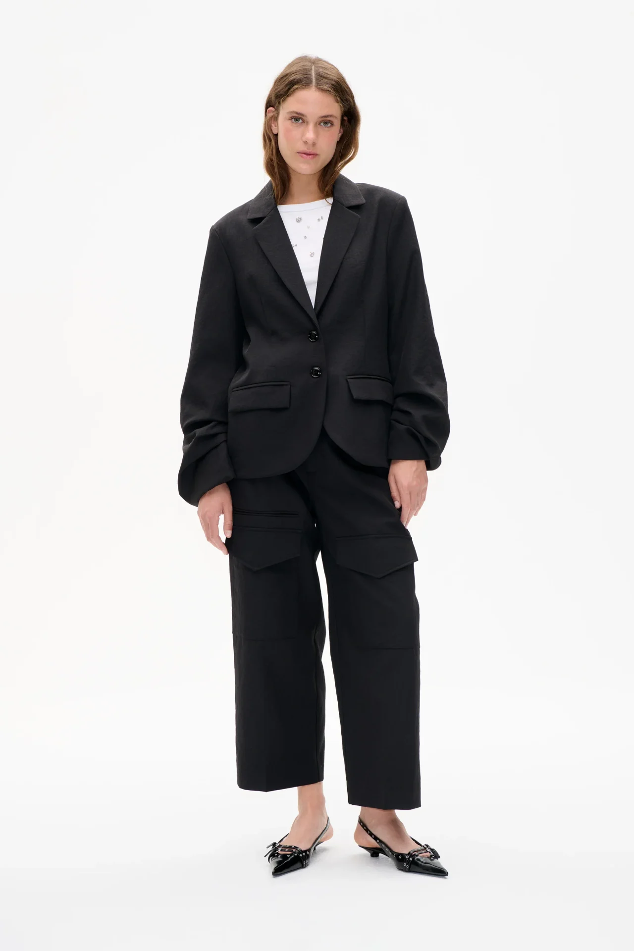 Geweldige blazer van Baum und Pferdgarten. Deze blazer heeft een kraag en een knoopsluiting. De details op de mouw maken de blazer super uniek! Ook zitten er zakken aan de voorkant en zit er een split aan de achterkant
