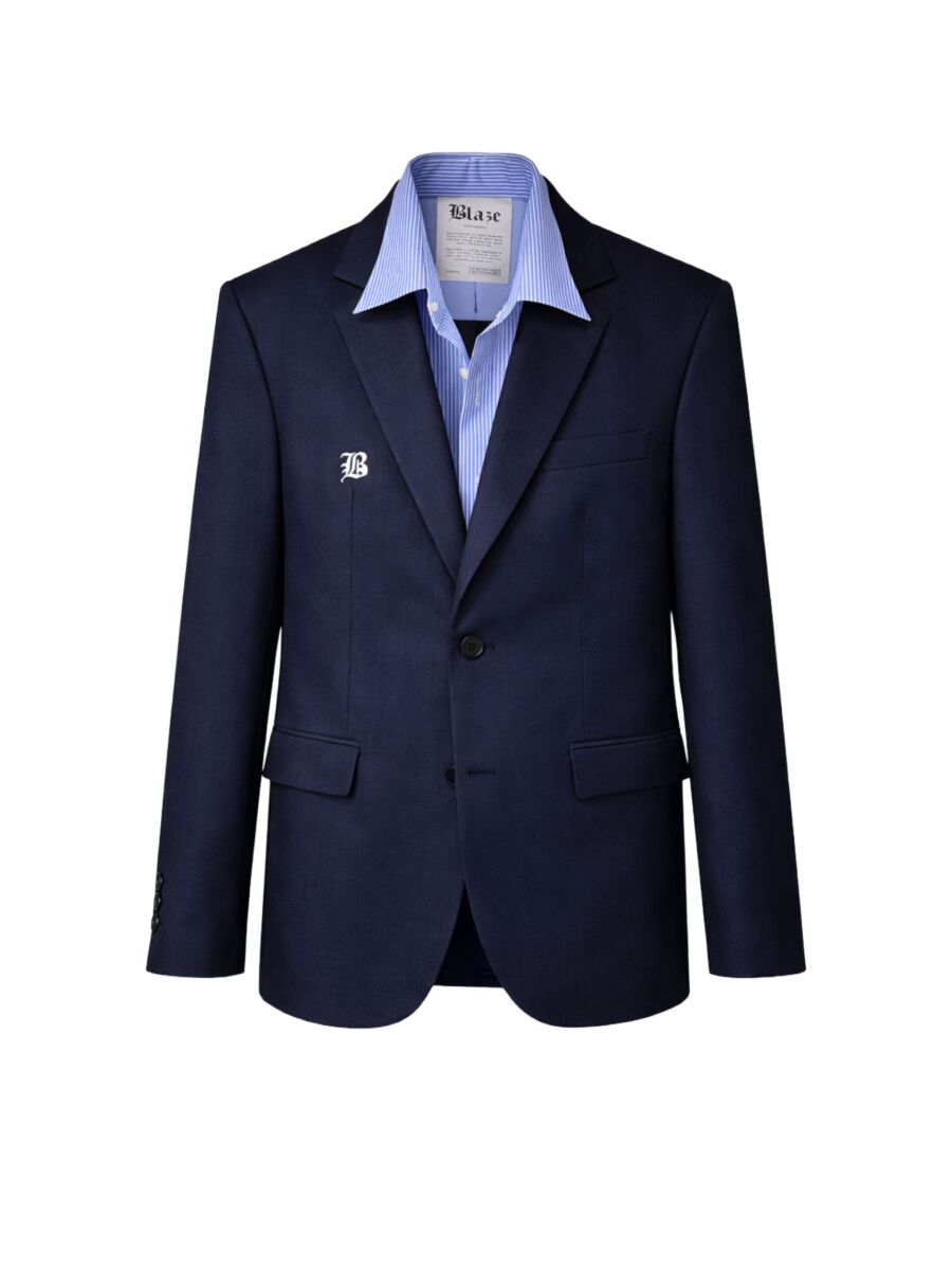 Hele leuke blazer van Blaze Amsterdam! De blazers van Blaze zijn vintage blazers die zijn opgefleurd met uniek maatwerk en eigentijdse accenten. Hierdoor is elk item uniek en ben jij de enige met dit item! De blazers vallen hierdoor ook allemaal anders qua maat. Deze blazer is donkerblauw en heeft een geïntegreerde lichtblauw gestreepte blouse, waardoor het lijkt alsof er een overhemd onder gedragen wordt.