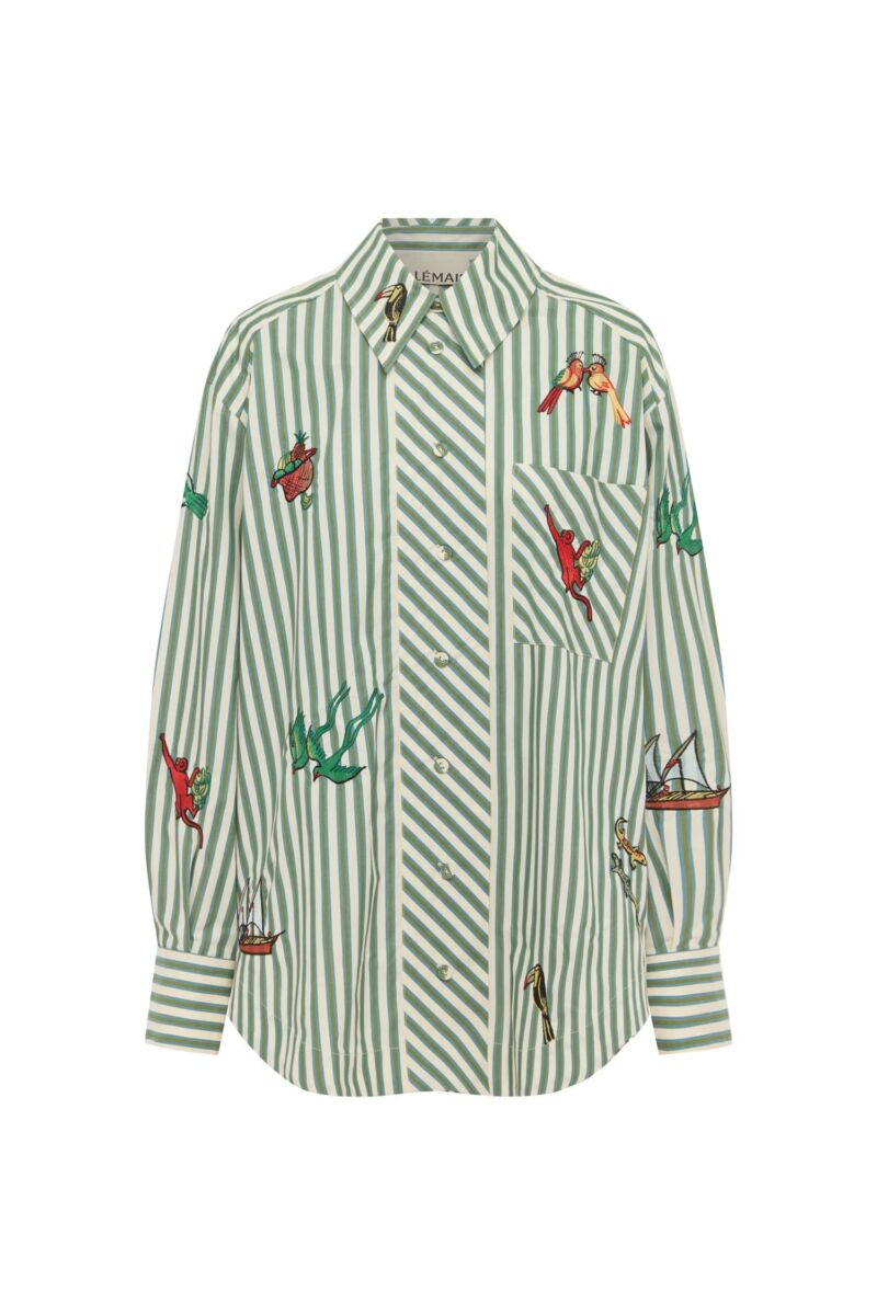 Super mooie blouse van Alémais! Een oversized blouse met groene verticale strepen en speelse, kleurrijke borduursels van vogels en tropische elementen. De blouse heeft een klassieke kraag, knoopsluiting en een borstzak. Combineer de blouse met het bijpassende short!