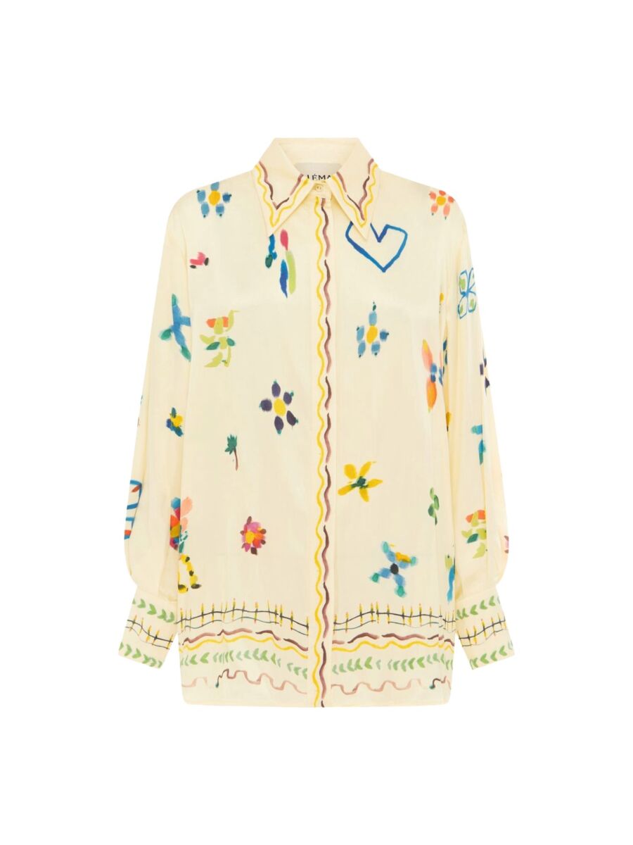 Geweldige blouse van Alémais! Deze blouse heeft lange mouwen en een knoopsluiting. Hij heeft een ronde hals met een kraagje. Op de blouse zit een super leuke getekende print. Combineer met de bijpassende broek om het als set te dragen!
