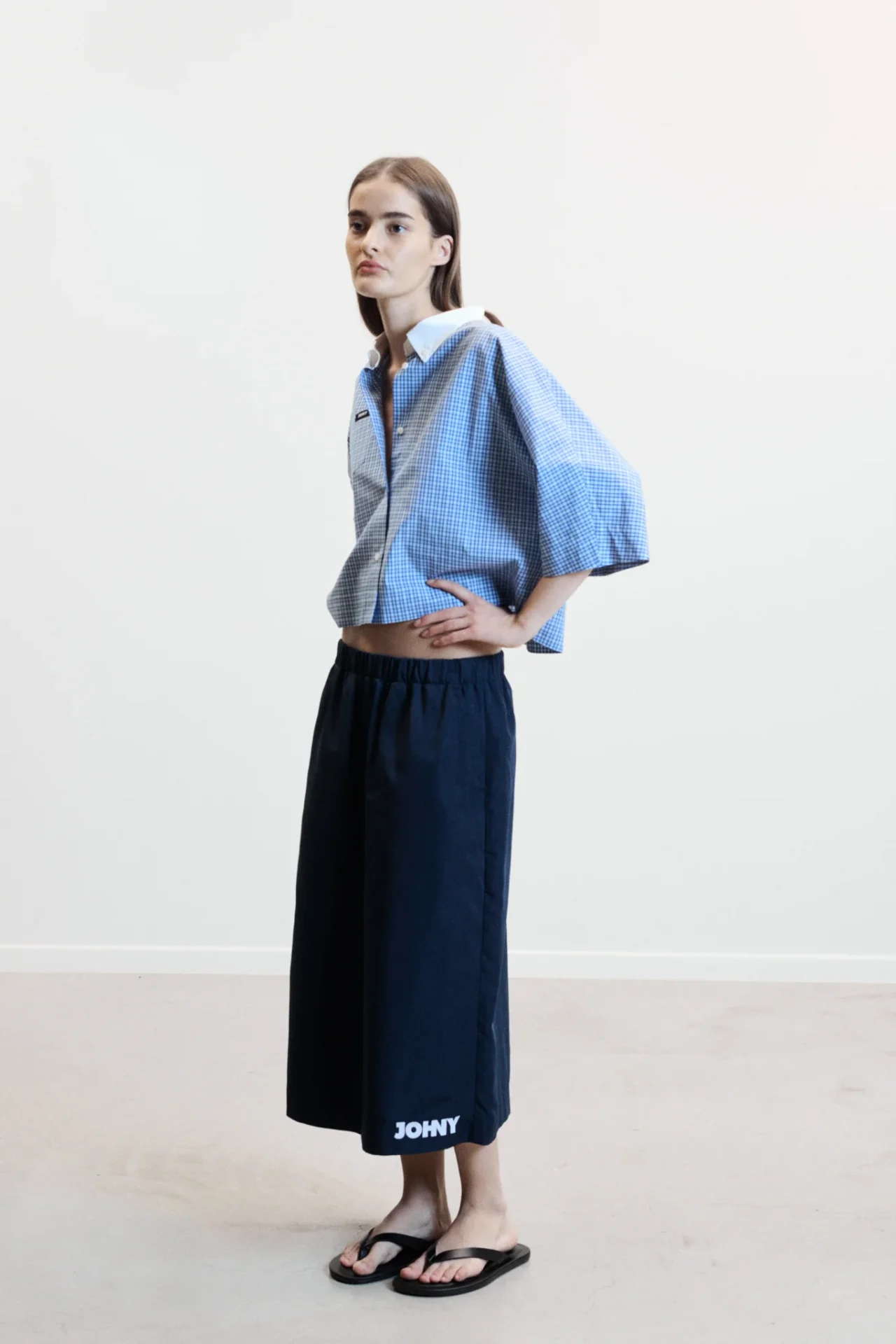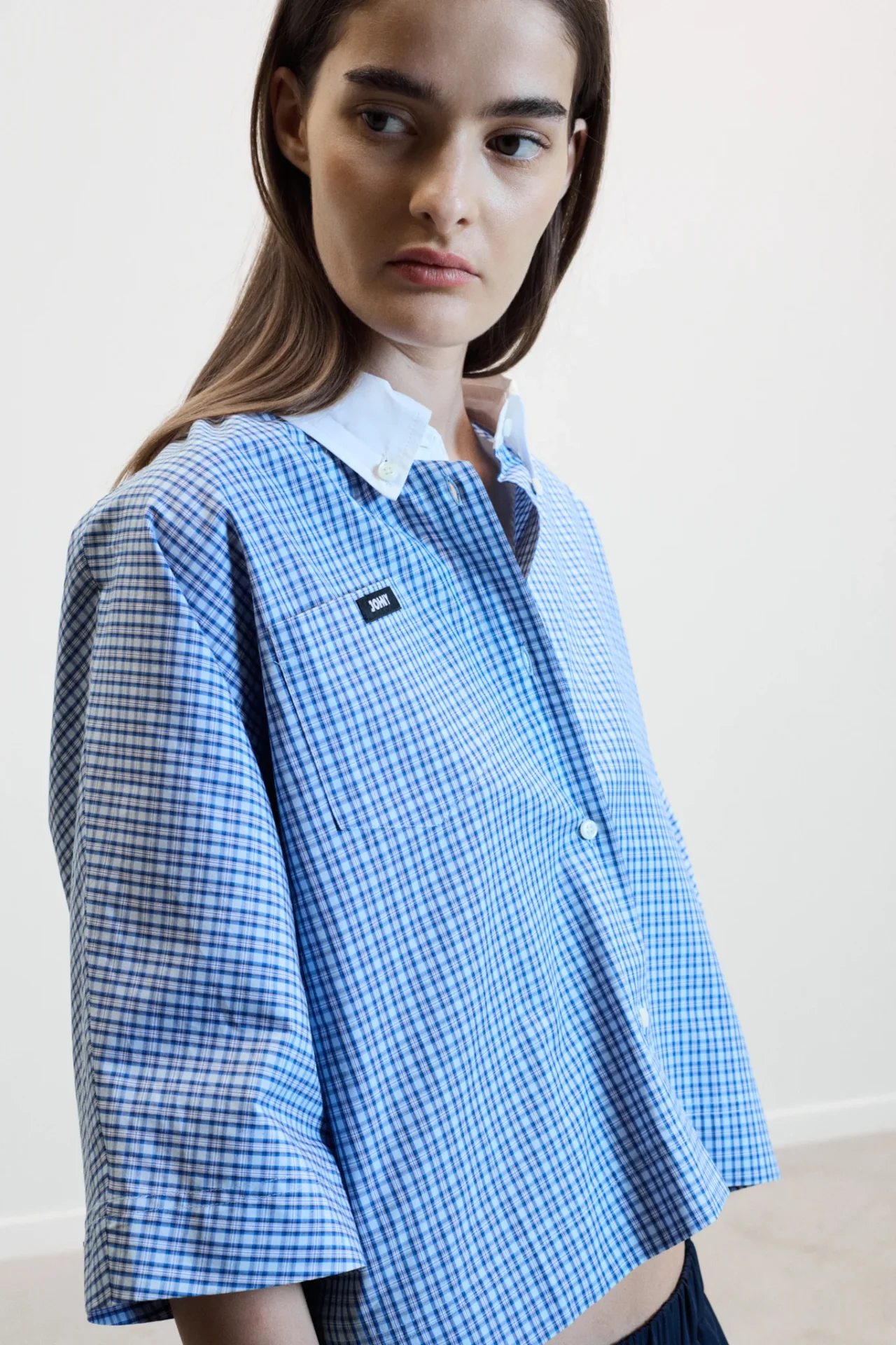De nieuwe collectie van Johny is weer fantastisch. Deze variant heeft een blauw geruit patroon. Op de borst staat het Johny logo en heeft een witte kraag. Hij heeft een cropped silhoutte en korte mouwen.