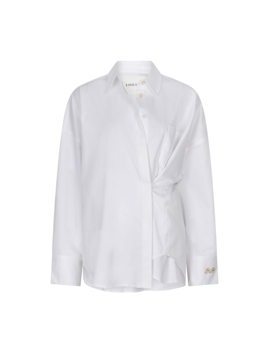 Super leuke blouse van Love Stories. Je kan de blouse dragen als klassieke basic, maar ook heel leuk met de extra knoop assymetrisch sluiten. Hij is goed te combineren op een leuke jeans.