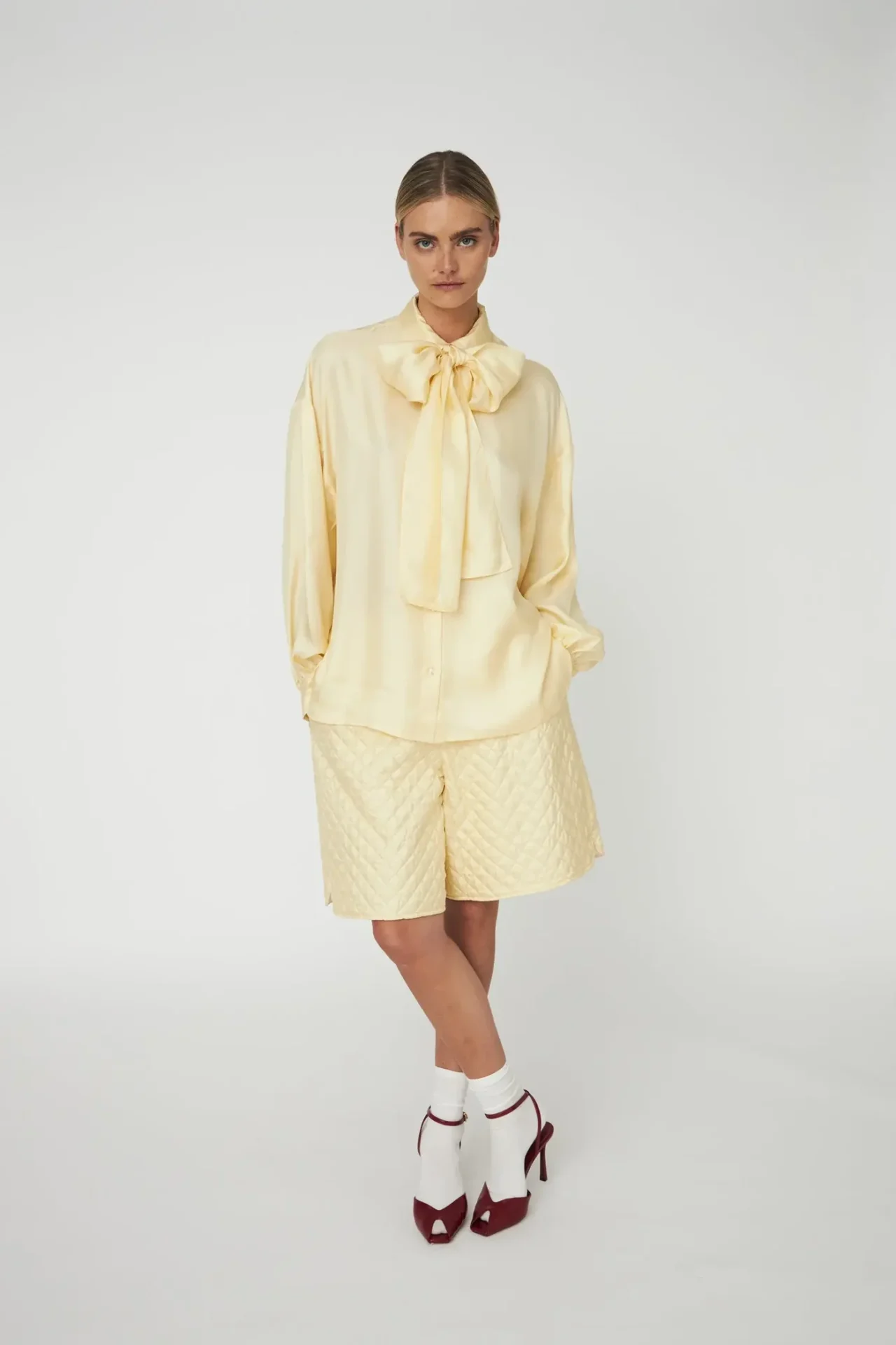 Short Stella Nova / Quilted Silk Shorts Soft Yellow