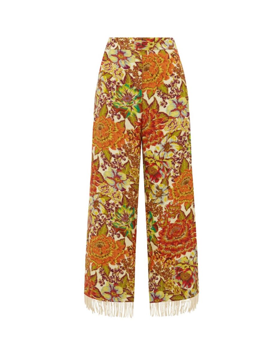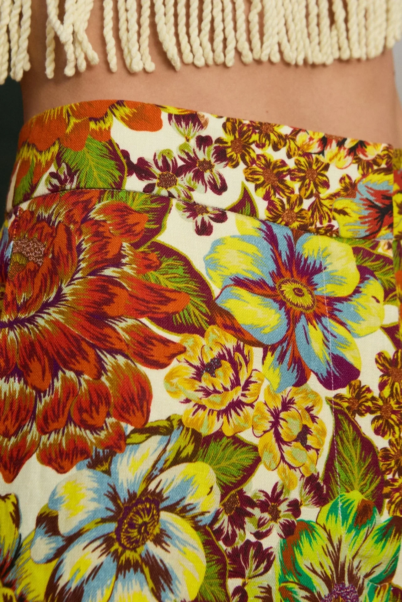 Geweldige broek van Alémais. De broek heeft een mid-waist en een uiteenlopende pijp. Over de hele broek zit een kleurrijke bloemenprint en er zitten fringe details aan de zoom. Combineer deze broek met de bijpassende top!