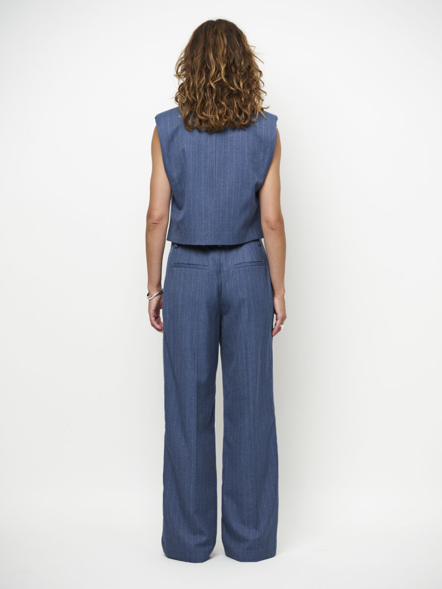 Prachtige broek van Dante6. Deze klassieke wide-leg broek heeft een pinstripe en decoratieve paspelzakken aan de achterkant. Ook heeft hij steekzakken in de zijkant. Combineer met het bijpassende gilet om het als set te dragen.
