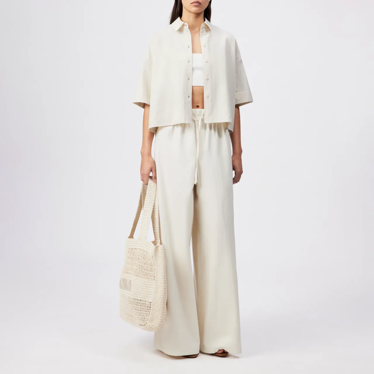 Hele mooie broek van Drykorn! Dit is een paperbag-broek met een relaxed fit. Hij heeft een elastische tailleband met een trekkoord en een normale lengte. Hij heeft zijsteekzakken en een opgestikte achterzak met knoop. Combineer de broek met de bijpassende top!
