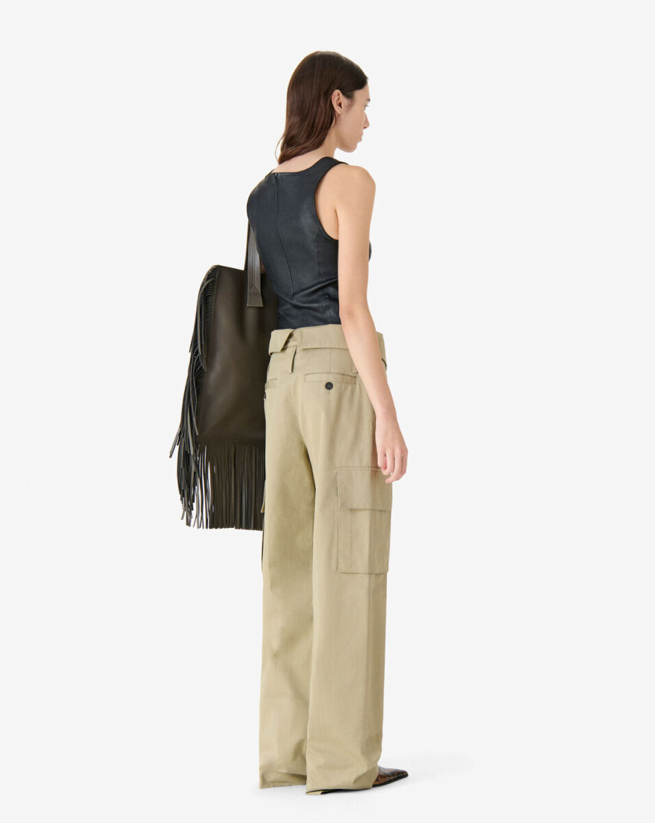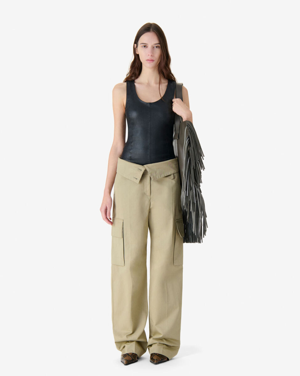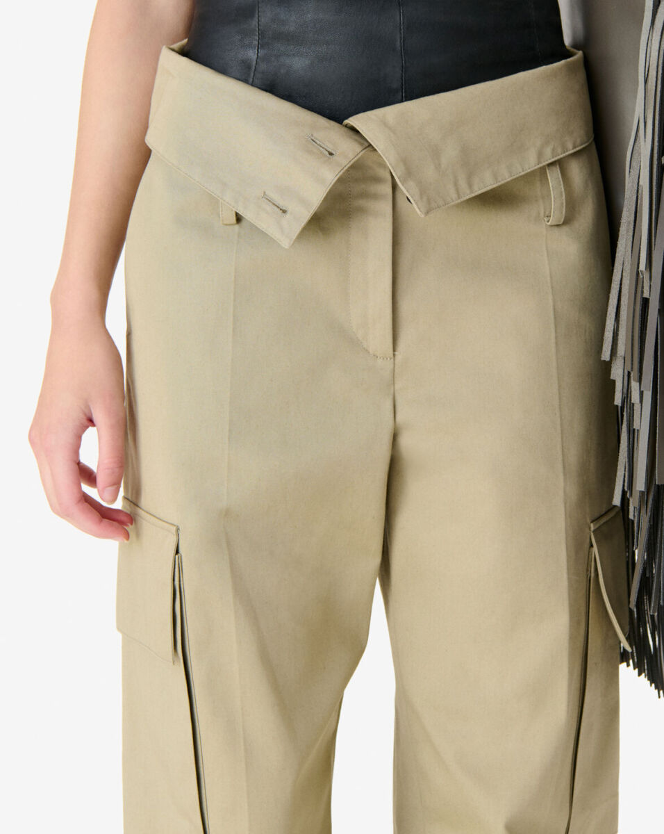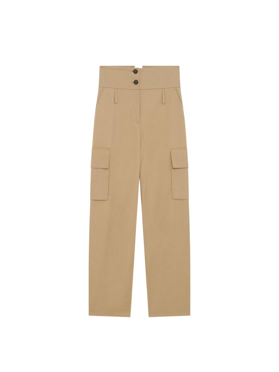 Prachtige broek van Iro met omslag detail aan de bovenkant. De broek heeft een beige kleur. Op de broek zitten cargo zakken, wat het item stoerder maakt! Je kan deze broek ook normaal dragen in plaats van het omslag detail aan de bovenkant. Combineer met het bijpassende jack.