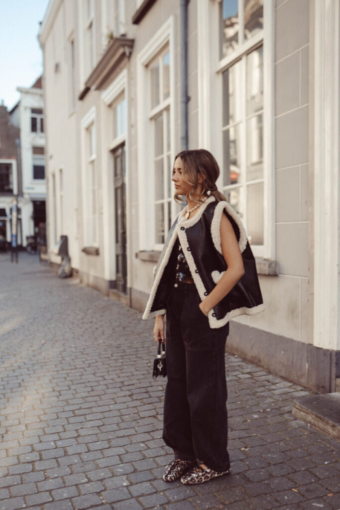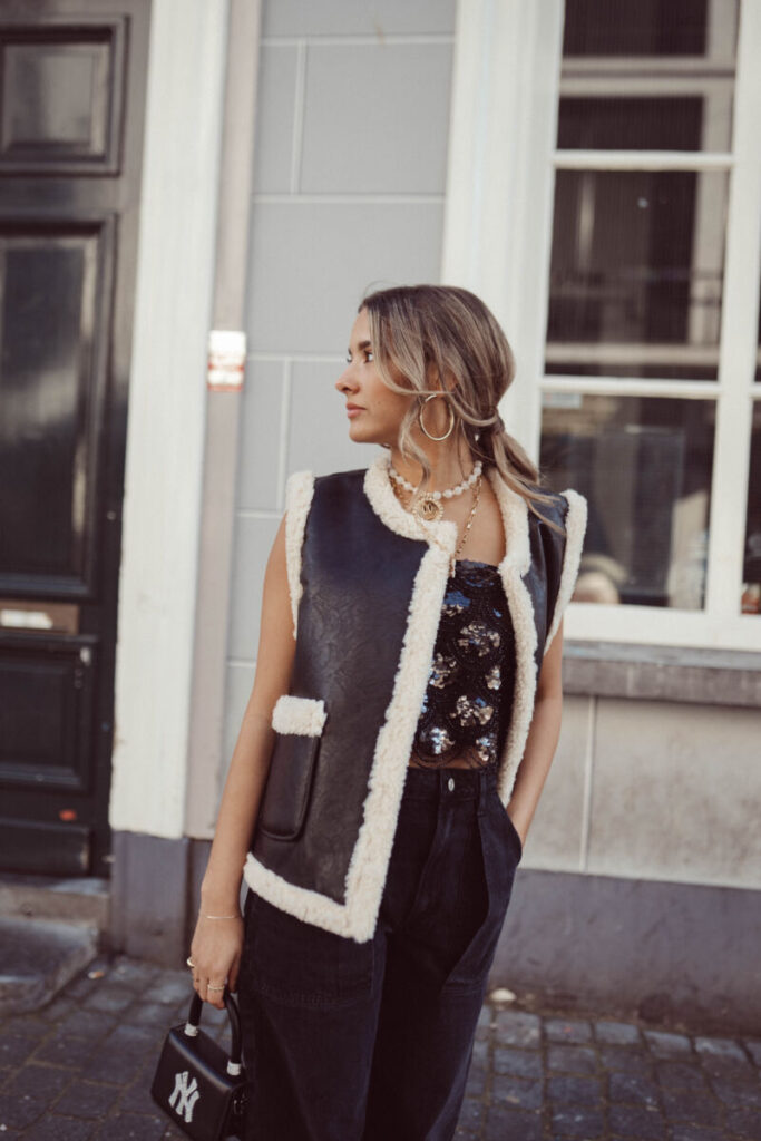 Hoe leuk is dit gilet van Baum und Pferdgarten?! Dit gilet van imitatieleer heeft drukknopen en opgestikte zakken aan de voorkant. Hij is volledig gevoerd en heeft details van imitatie shearling.