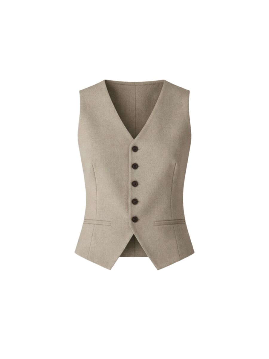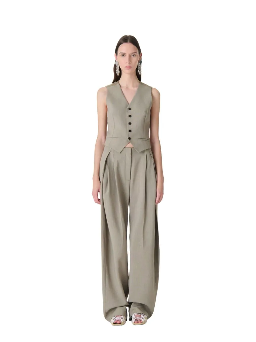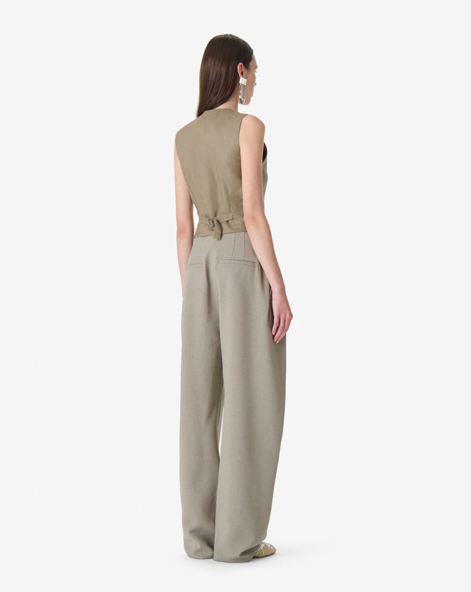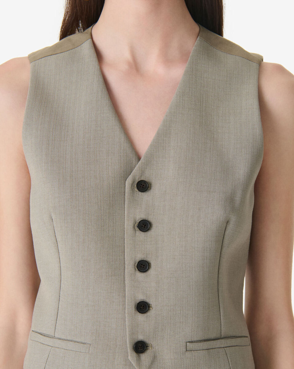 Prachtig gilet van Iro. Dit gilet zit aangesloten en heeft een knoopsluiting aan de voorkant. Het gilet heeft een riempje aan de achterkant om te tailleren. Draag dit gilet met het bijpassende jack eroverheen en de bijpassende broek voor een supergave look.
