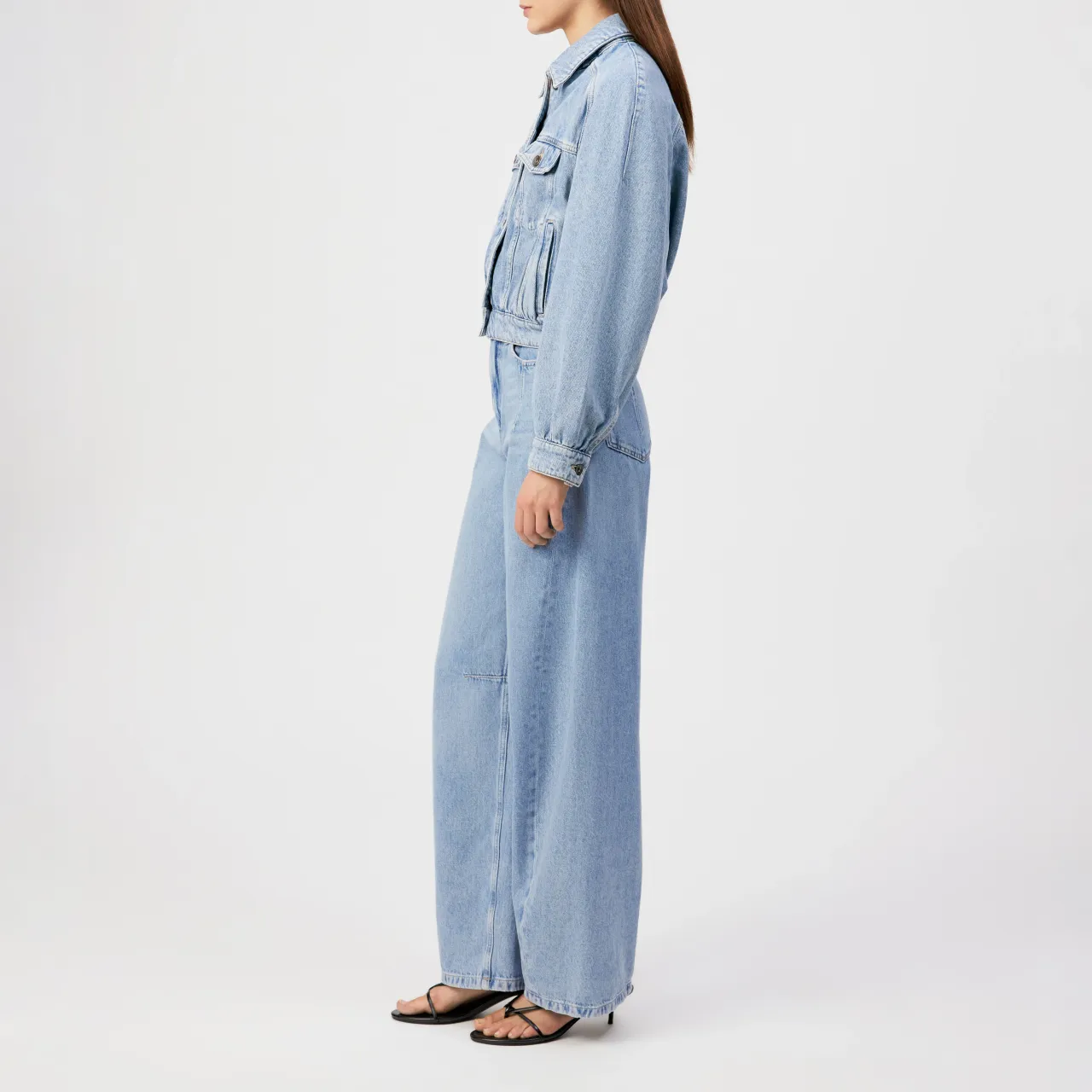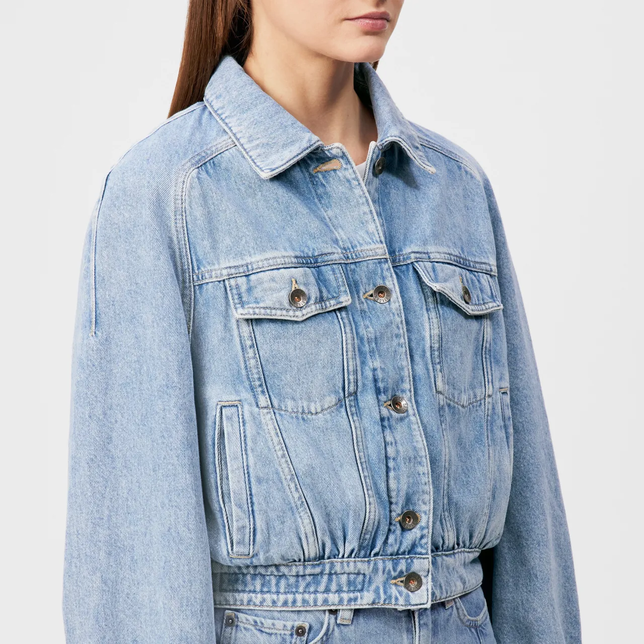 Superleuk jack van Drykorn. Dit spijkerjack heeft een relaxte fit en een kraag. Het jack heeft een korte ruglengte. Hij heeft steekzakken en zakken op de borst.