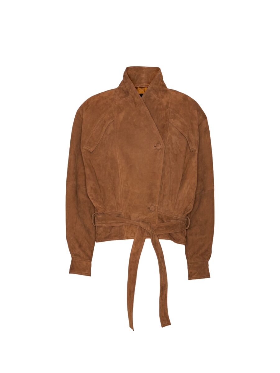 Prachtig jack van Rotate! Deze bomber is gemaakt van zacht suède en straalt een rijk en verfijnd karakter uit. Het jack sluit aan de voorkant met knopen en een bijpassend ceintuur. Het is echt een tijdloos item met een luxueuze afwerking. Combineer met de bijpassende broek.