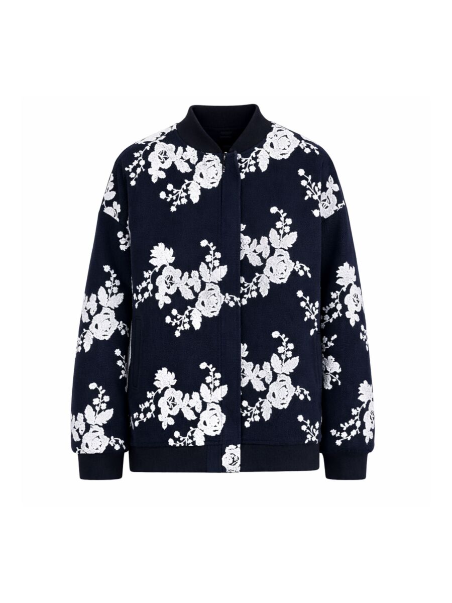 Te gek jack van Stella Nova. Dit jack heeft witte sequin bloemen over het hele jack. Hij heeft een oversized fit en sluit met drukknopen. Het is echt een statement piece om jouw look af te maken.
