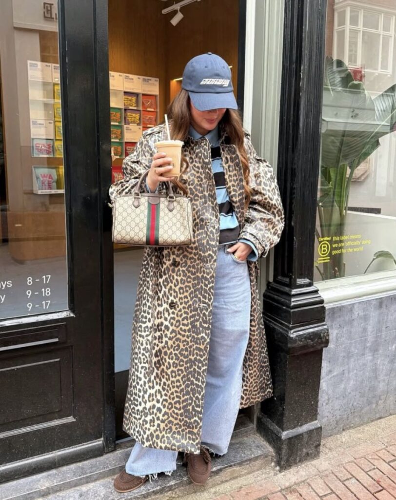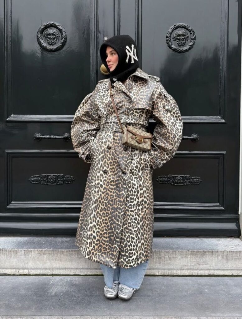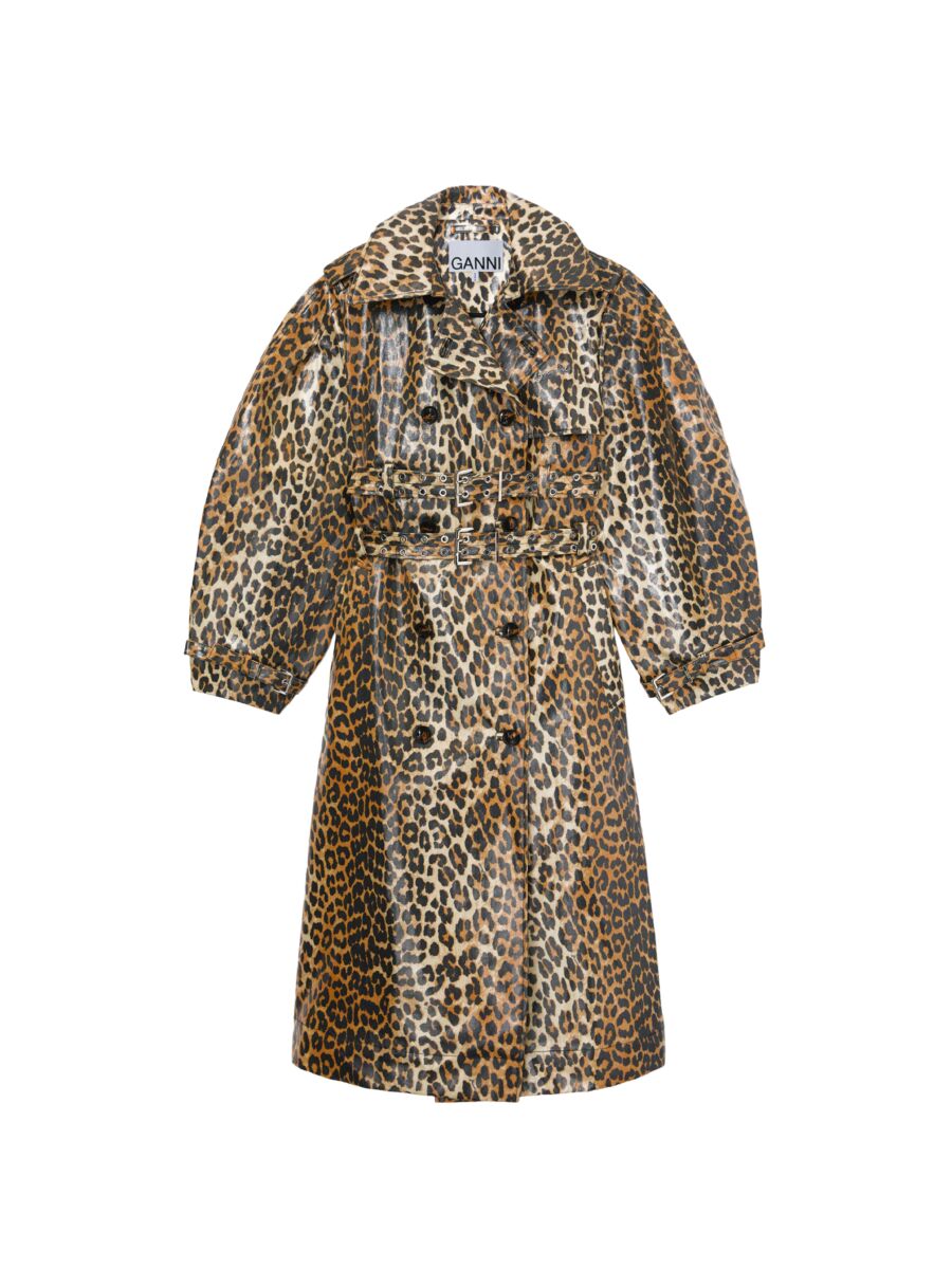 Te leuk jas van Ganni! Deze jas heeft de welbekende luipaardprint. Het is een prachtige lange jas met grote pofmouwen en een fantastische kraag. Hij sluit met knopen en een dubbele gesp. Op de borst heeft de jas een metalen Ganni logo. De jas heeft een coating waardoor die ook perfect is voor de regenachtige dagen.