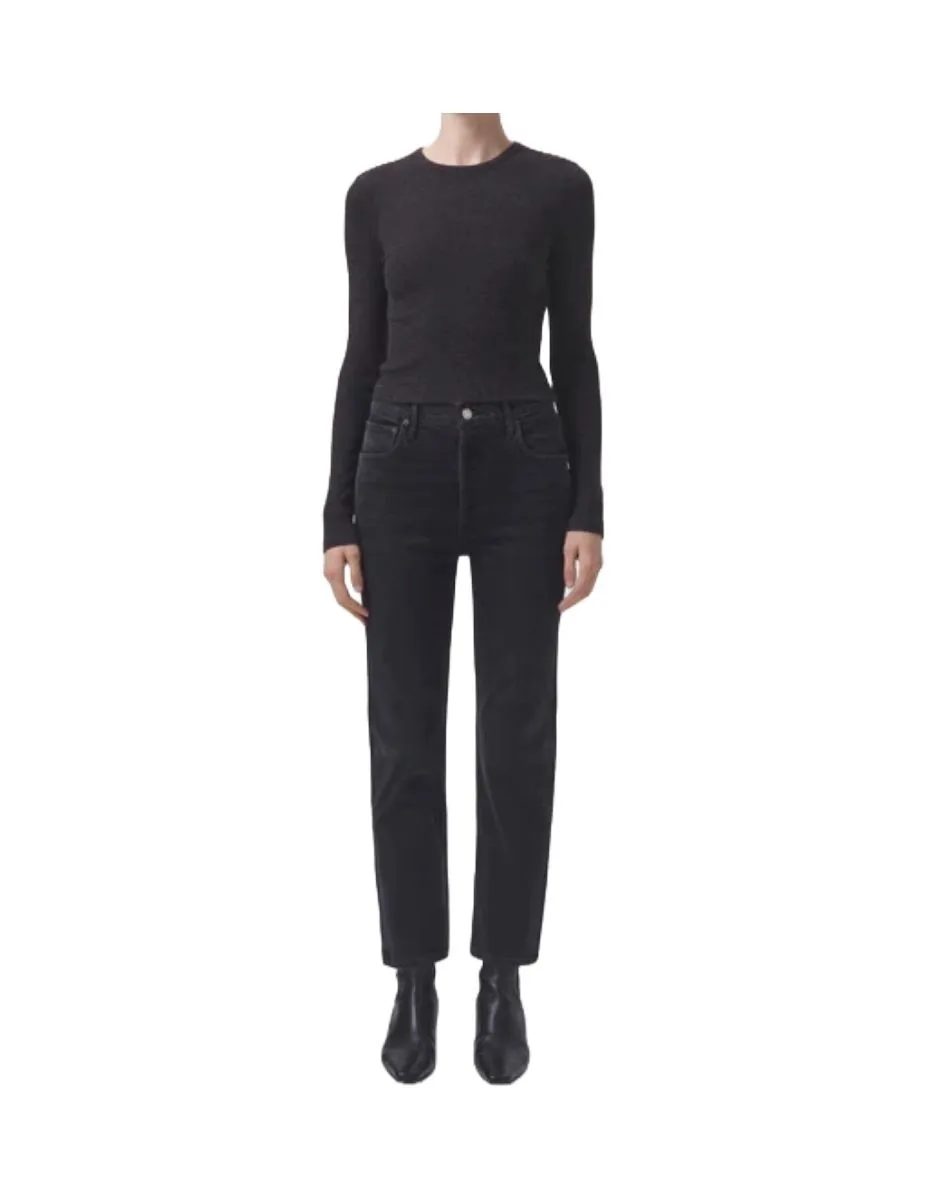 Dit model, de Riley jeans, zit standaard bij ons in de collectie. Een mooie high waist jeans met een rechte pijp. Deze jeans heeft een langere pijp dan de andere Riley die bij ons in de collectie zit. Er zit een lichte stretch in de denim. De jeans valt goed op maat. Samenstelling Kleur: Gewassen zwart Samenstelling: 96% organisch katoen 3% polyester 1% elestane Riley Denim High waist Agolde Juul
