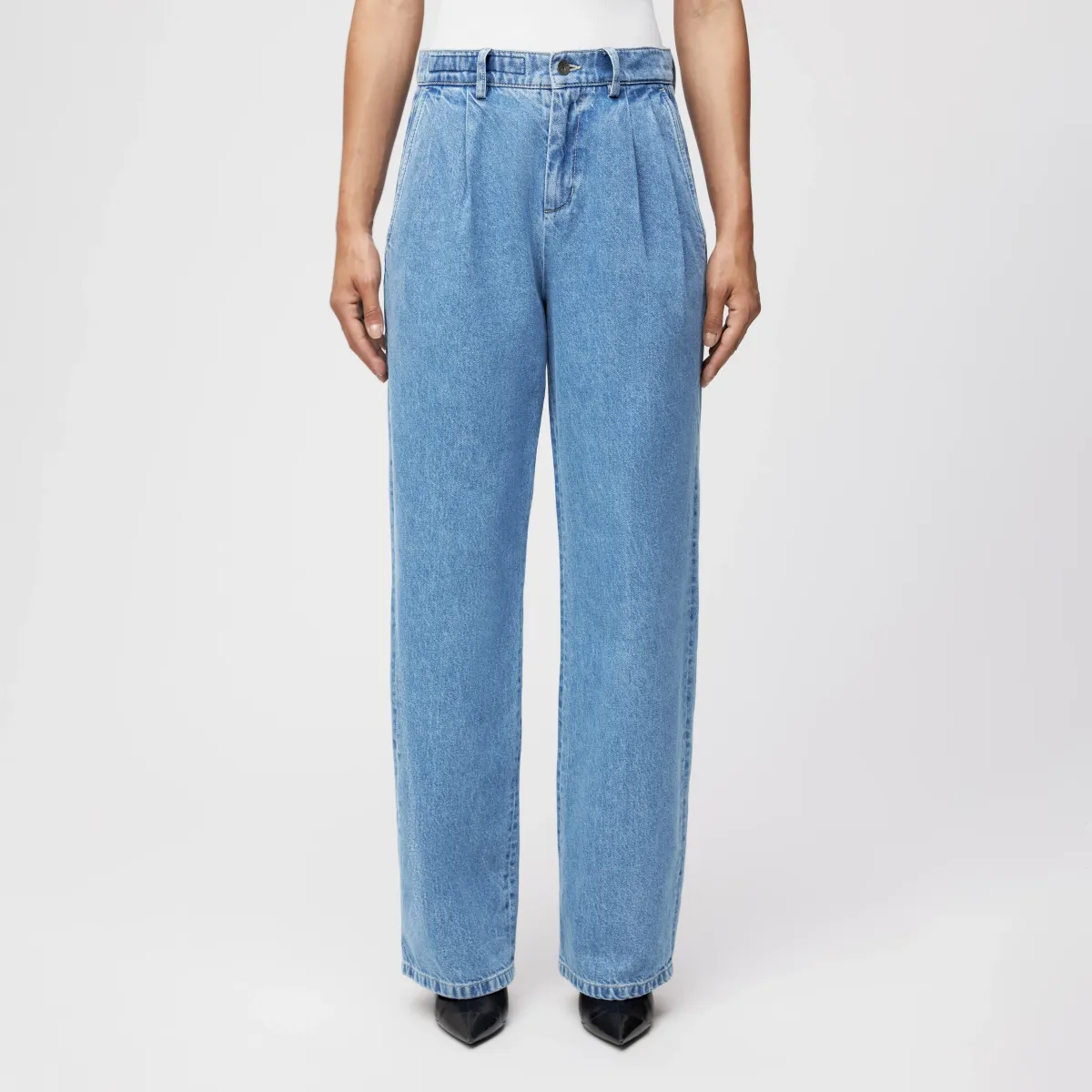 Superleuke jeans van Drykorn. Deze jeans is mid-waist en heeft een relaxed fit. Hij heeft riemlussen en plooien aan de voorkant.