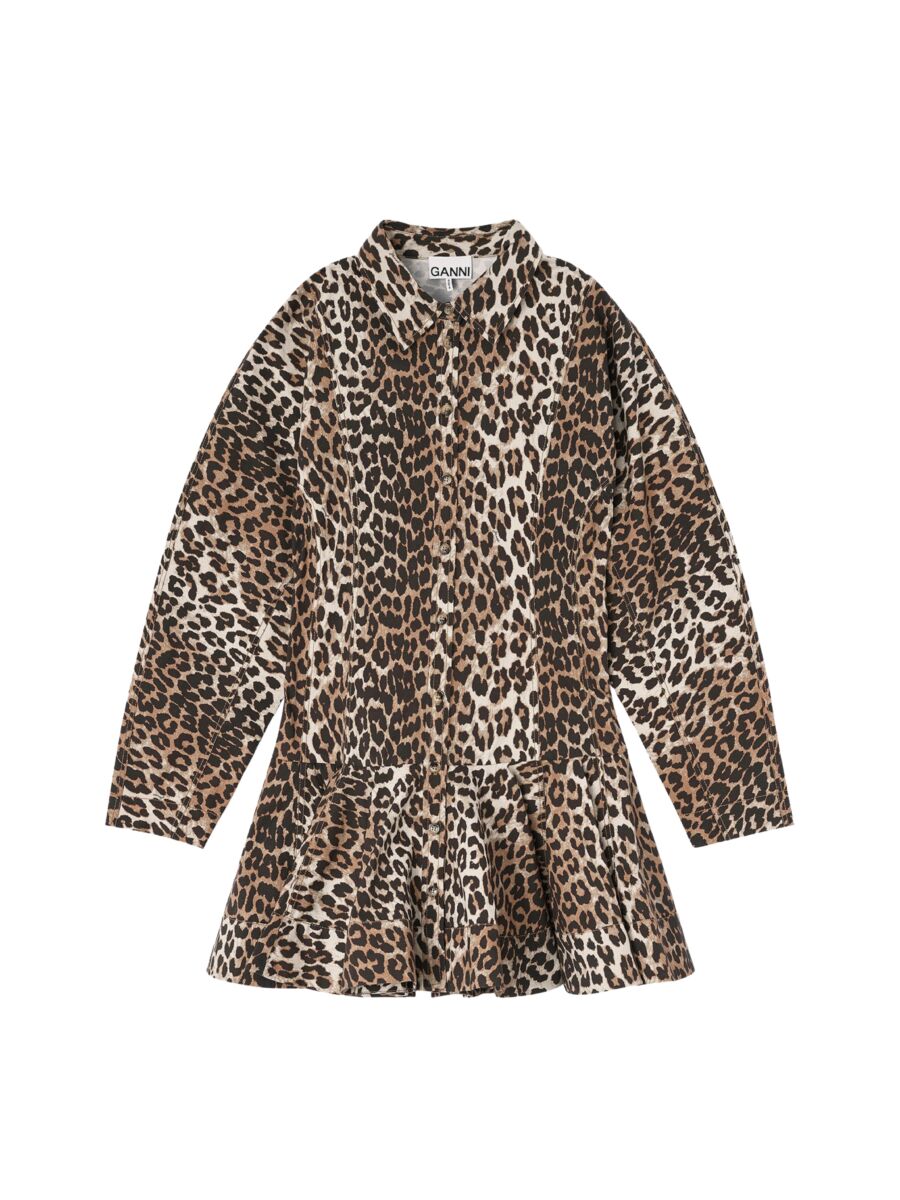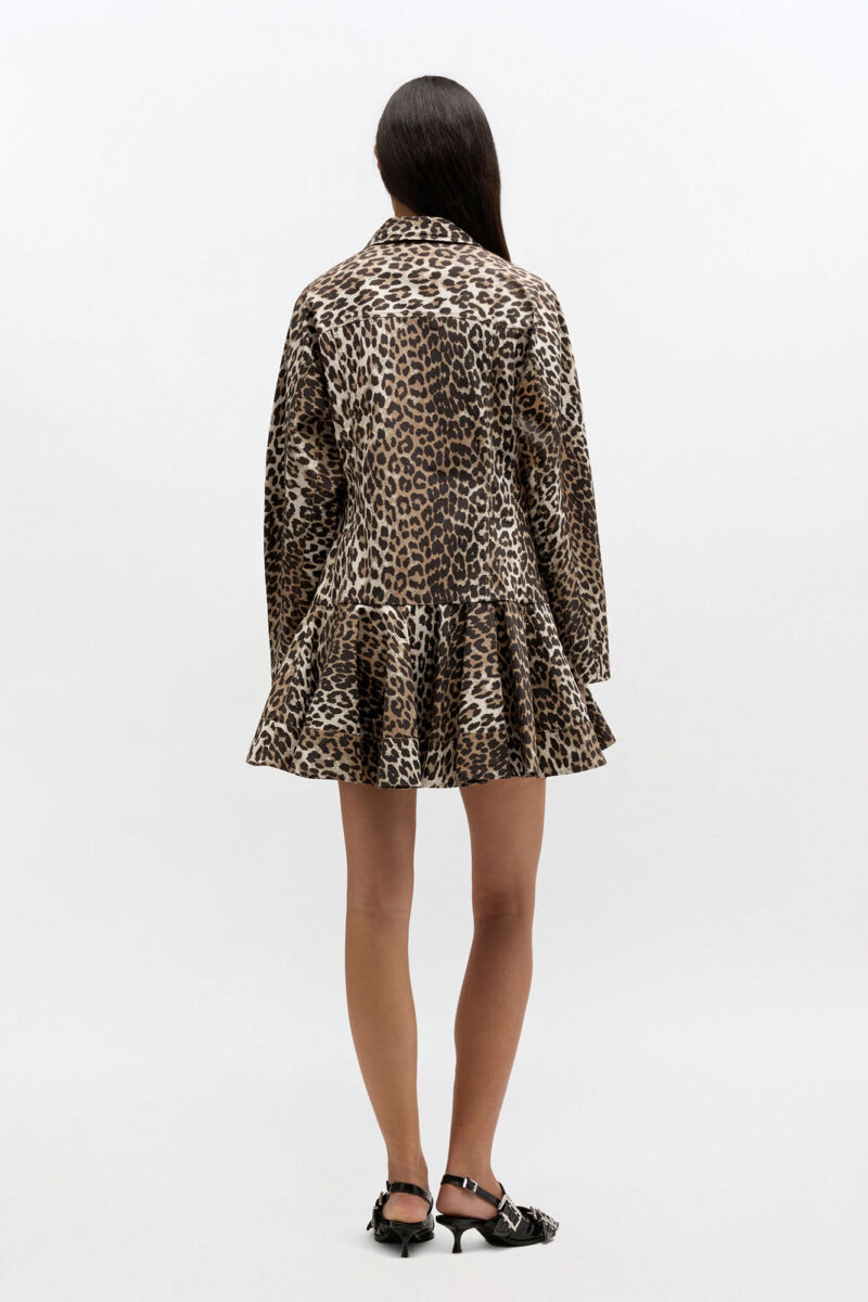 Jurk Ganni / Printed Stretch Cotton Mini Shirt Dress