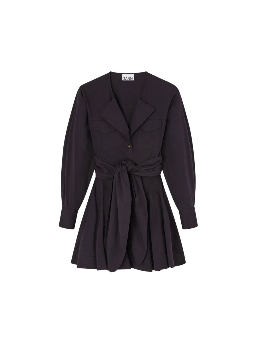 Hele mooie jurk van Ganni! Een getailleerde jurk met lange mouwen, een reverskraag en knoopsluiting aan de voorkant. De jurk heeft een ceintuur in de taille en een licht uitlopende rok met plooien.