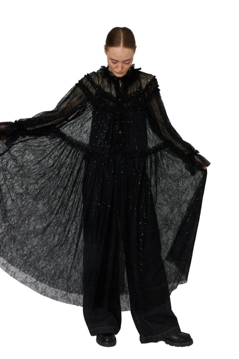 Sheer Lace Maxi Cape Dress