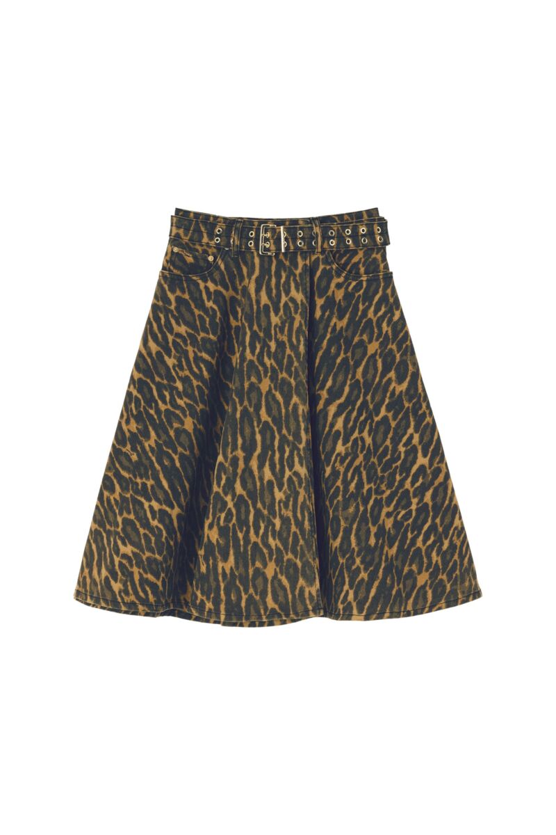 Prachtige rok van Ganni. Deze rok heeft een middelhoge taille en loopt wijd uit. De rok heeft een geweldige luipaardprint. Bij de rok zit een geweldige riem, met metalen ringetjes erin als extra detail.