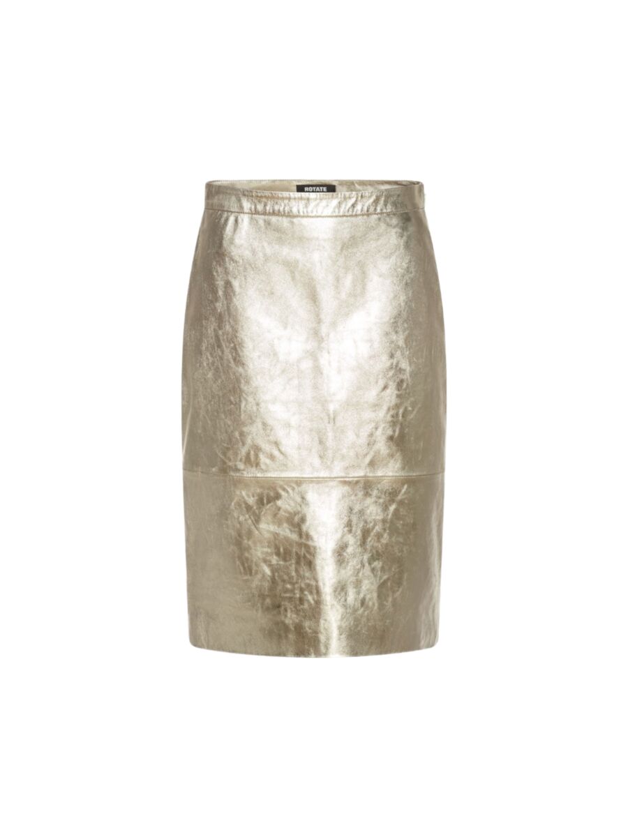 Prachtige rok van Rotate Birger Christensen. Deze rok is van leer en is high-waist. Hij is super mooi shiny, wat een gaaf effect geeft. Combineer met een mooie trui of feestelijke top!