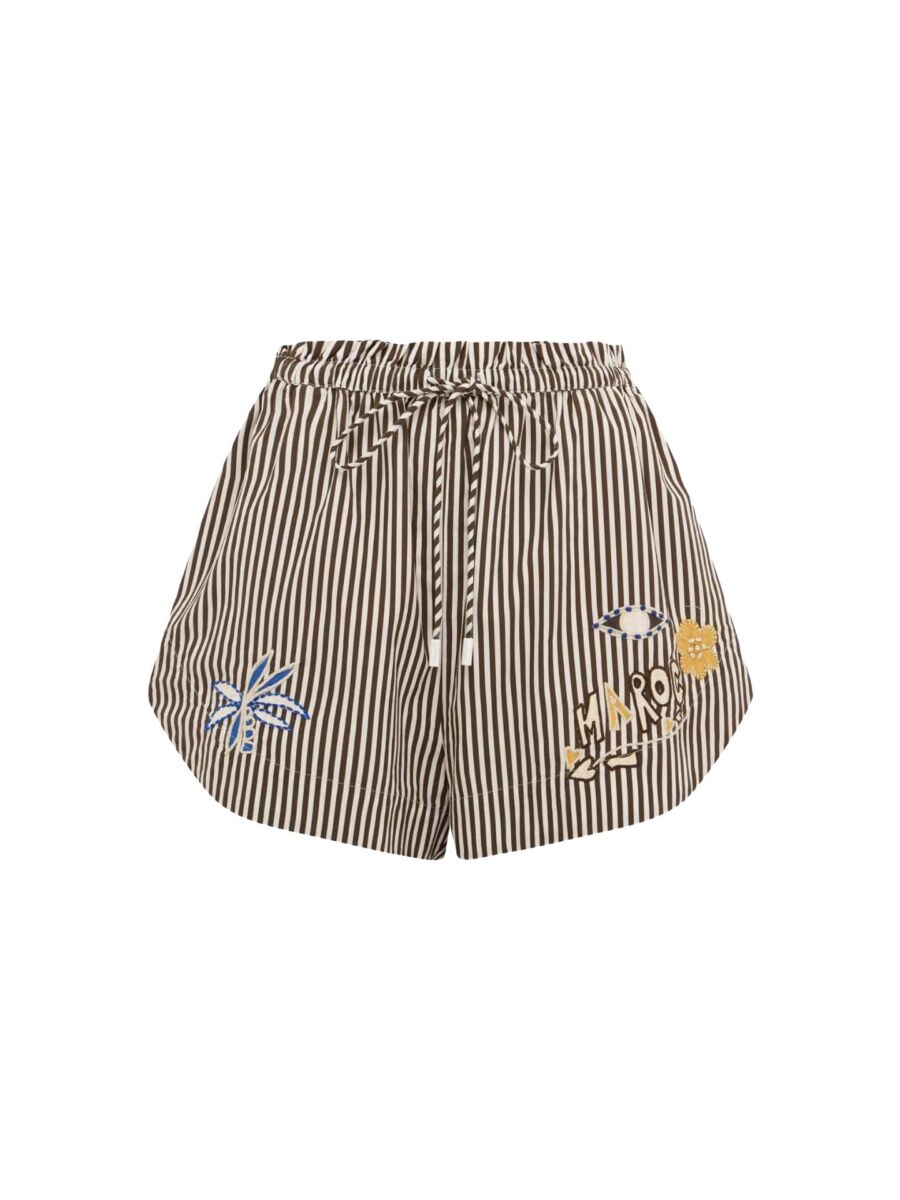 Superleuke short van Alémais. De short heeft een elastische tailleband met trekkoord. Hij heeft een bruin en licht roze gestreept patroon. Op de short zitten super mooie borduursels als extra detail. Combineer met de bijpassende blouse om het als set te dragen!