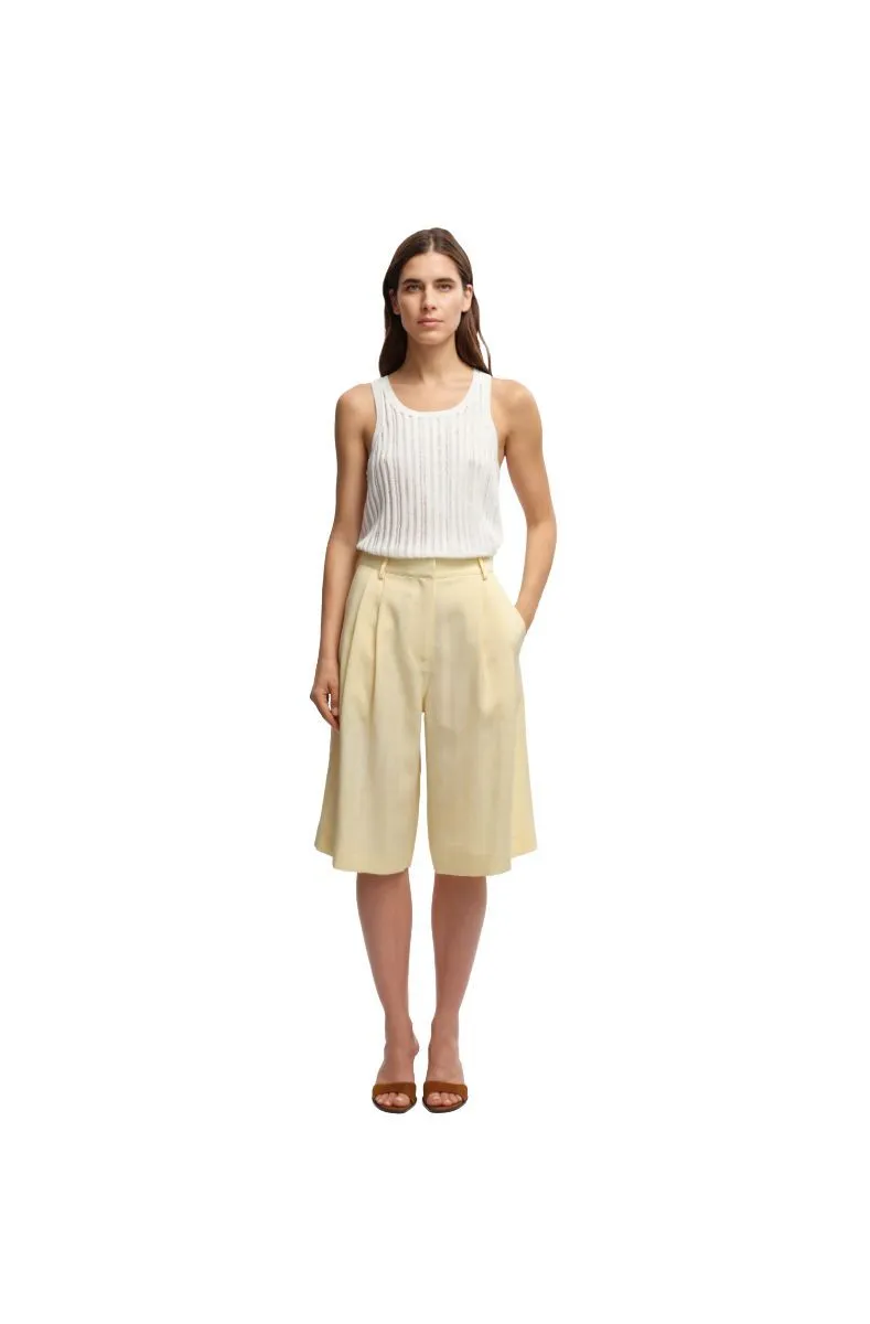 Super leuk short van Margaux Lonnberg! De short heeft een gestructureerde hoge taille. plooien aan de voorkant en de subtiele zakken.
