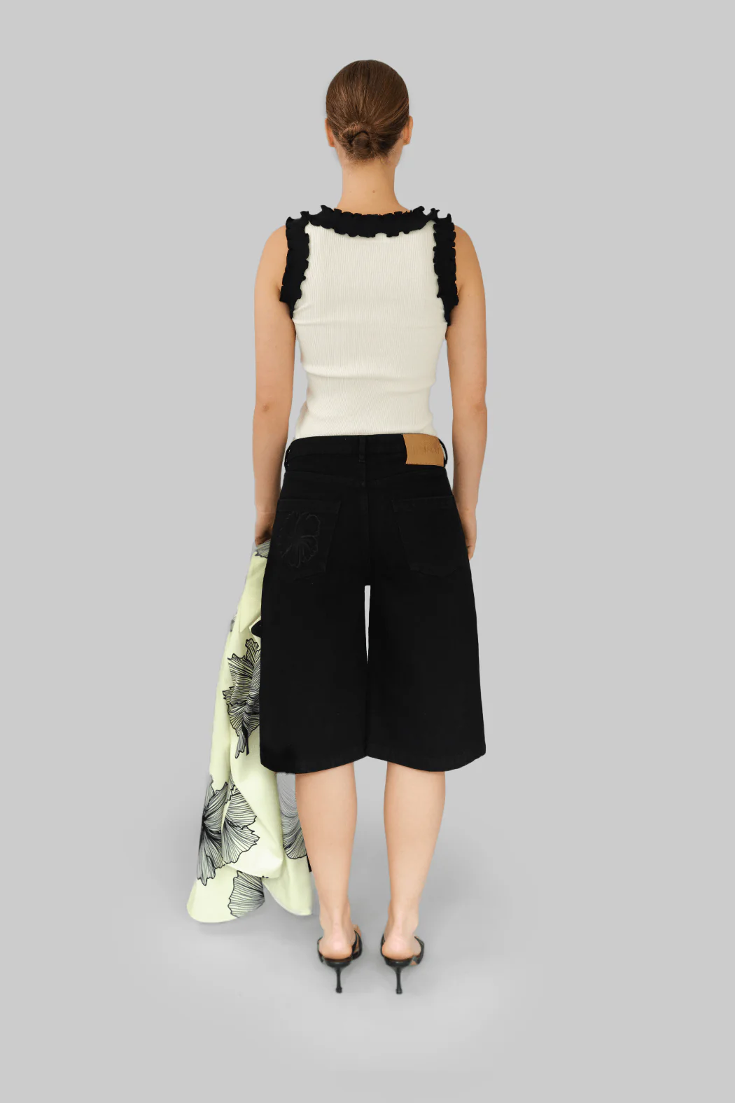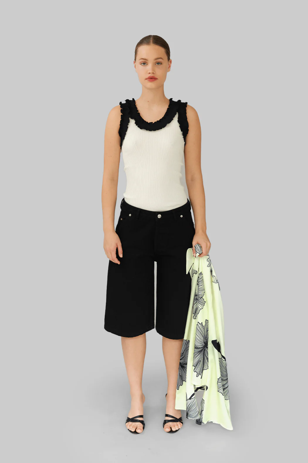 Leuk shortje van OpéraSPORT! De short heef een knielange pasvorm, een recht silhouet en vijf zakken. Hij is afgewerkt met een knoop en ritssluiting, super handig om overal mee te combineren!