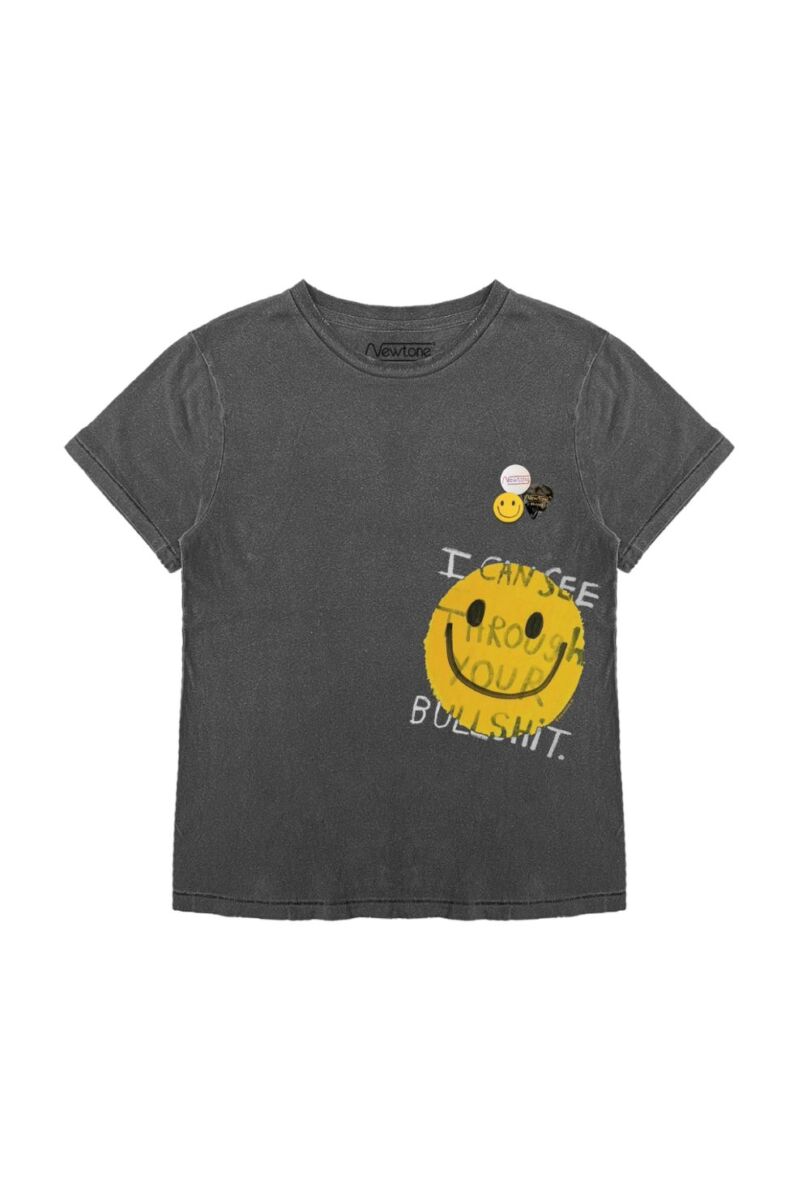 Super leuk t-shirt van Newtone! Het shirt is grijs en heeft een smiley print op de voorkant. Hij heeft korte mouwen en een ronde hals. Heel fijn shirtje om overal mee te combineren!