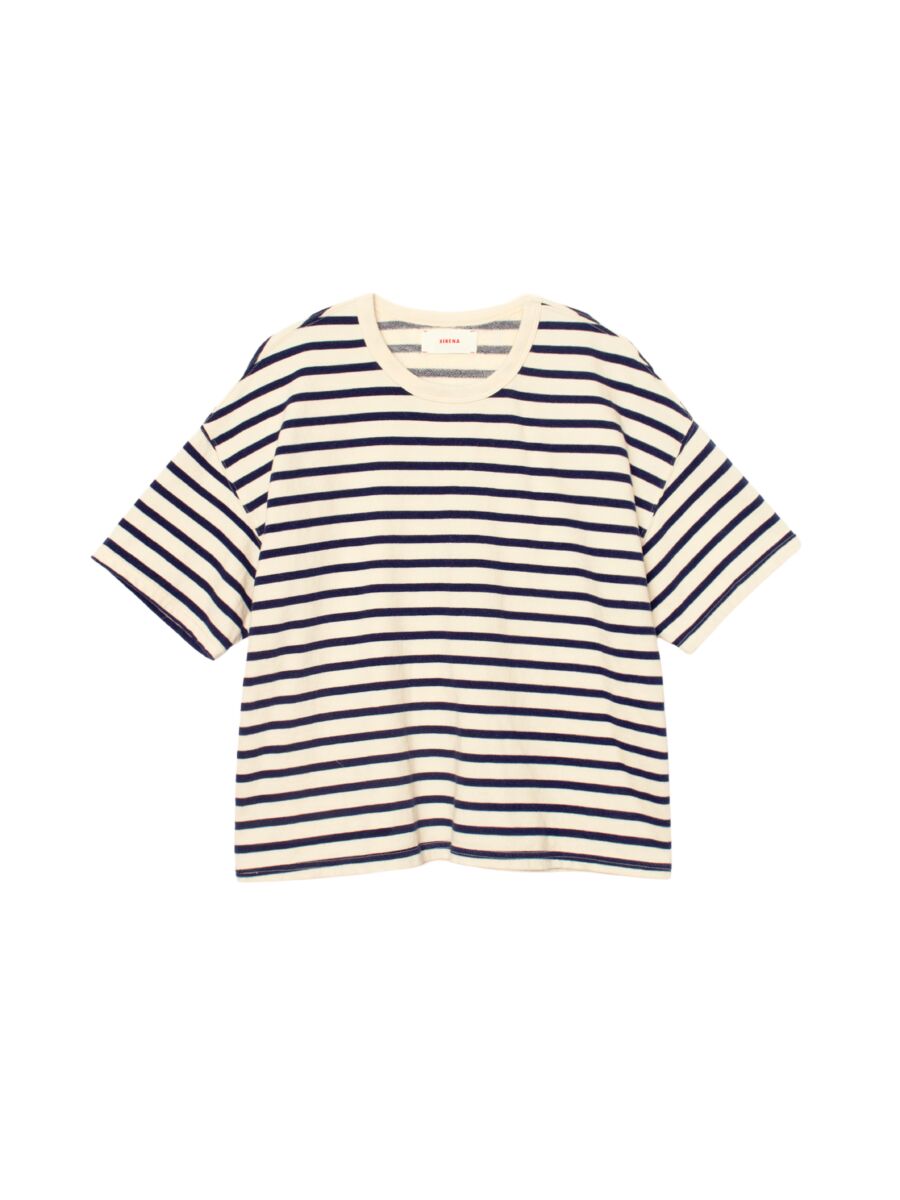 Dit shirt van Xirena is gemaakt van een mooie dikke stof in een gestreept patroon. Hij heeft een ronde hals en korte mouwen. Combineert super fijn onder jasjes, maar ook erg leuk los te dragen op een fijne jeans.
