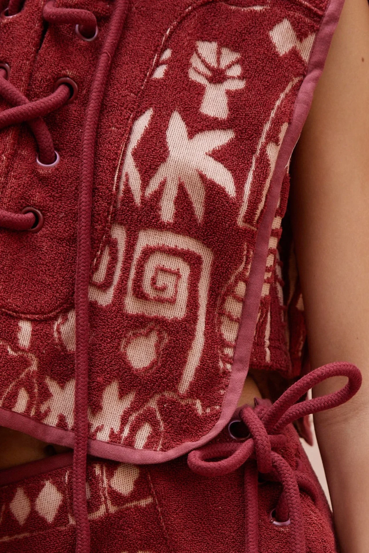 Deze top van Alémais is TE leuk! Hij is mouwloos dus het een soort gilet . De top heeft een ronde hals met veter detail. Hij is heel lekker gemaakt van een badstof, dus draagt super lekker!
