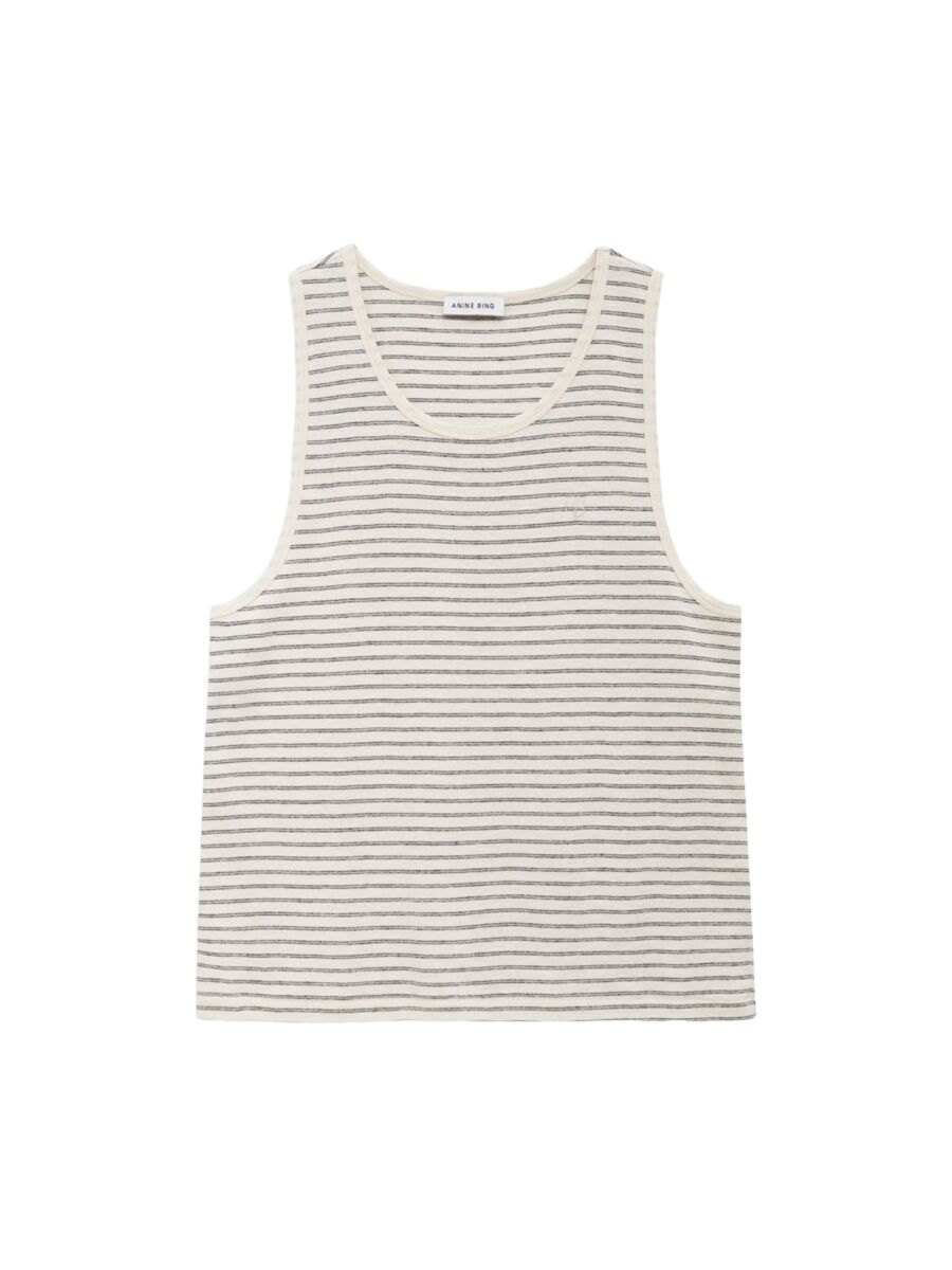 Mooie top van Anine Bing. Het is een gestreepte tank top met een ronde hals en een klein AB logo op de borst.