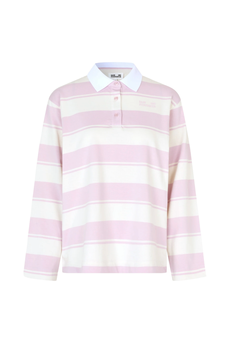 Super leuke top van Baum und Pferdgarten. Het is een polo met lange mouwen en een kraag. De top heeft een streepjespatroon en het logo op de borst. Een hele makkelijke top om met alles te combineren!
