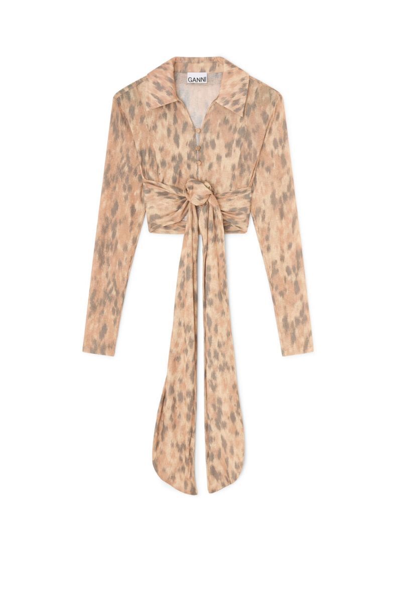 Top Ganni / Printed Marl Mesh Cropped Tie Burro