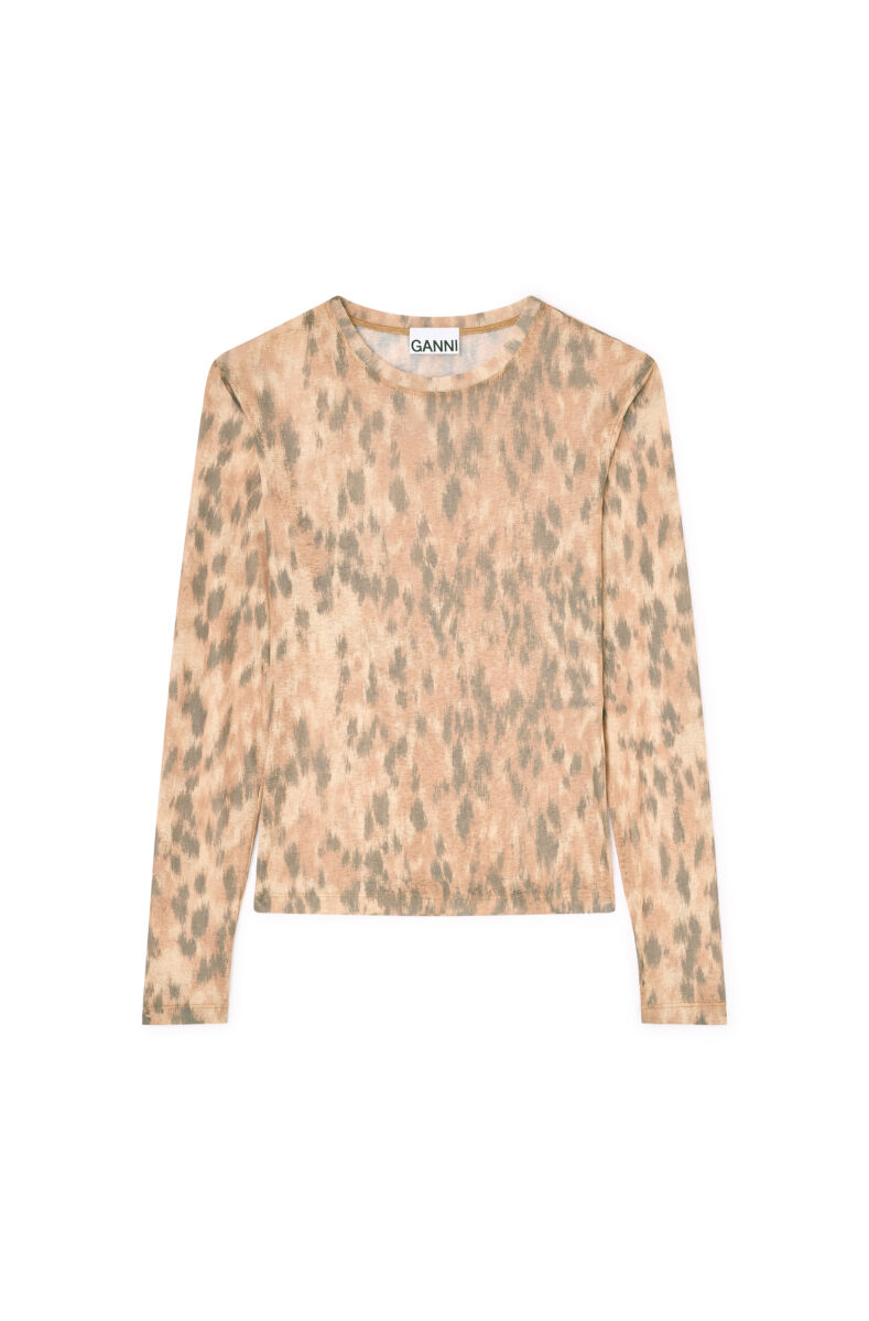 Geweldige top van Ganni! De top heeft lange mouwe en een ronde hals. Hij heeft een mooie panterprint en is heel leuk om overal onder te combineren!