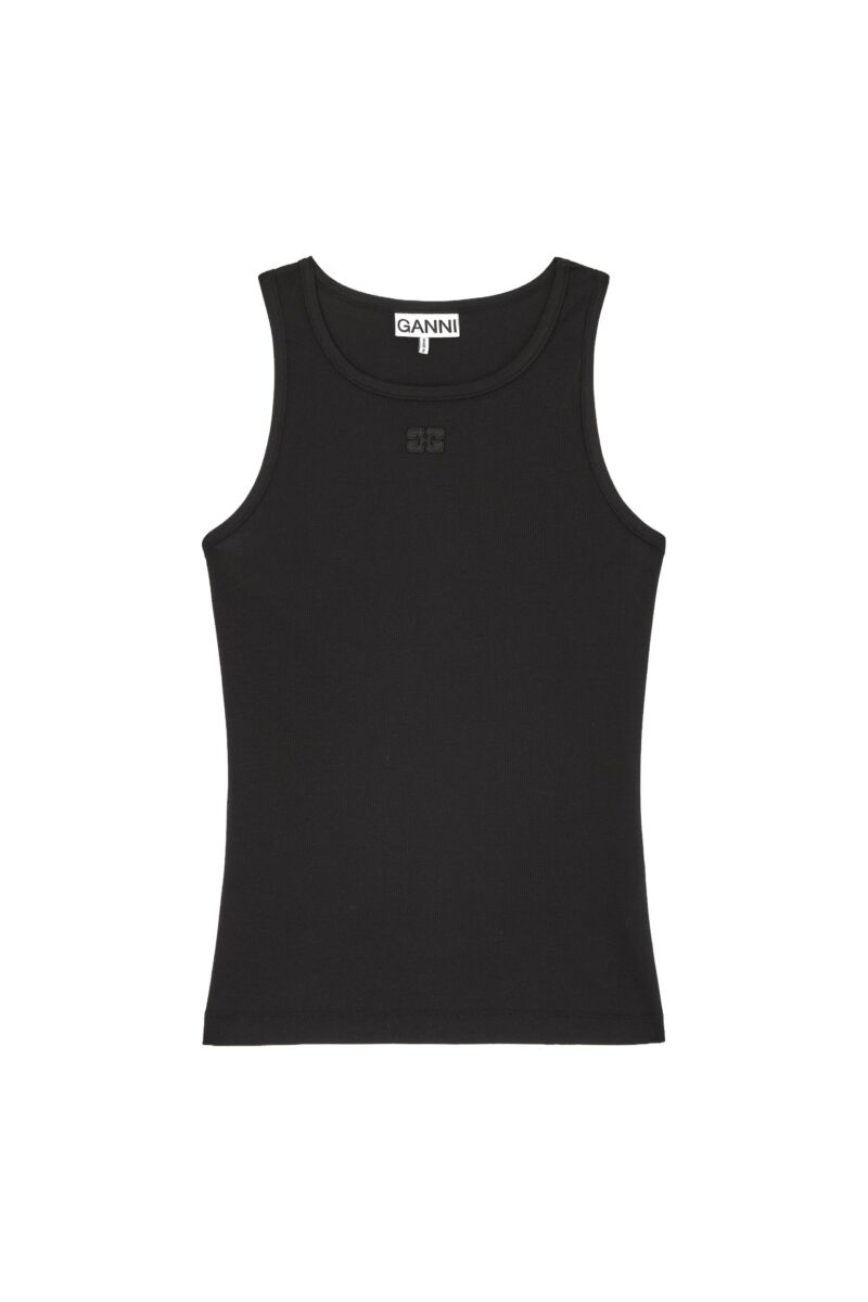 Top Ganni / Soft Cotton Rib Tank Top Black