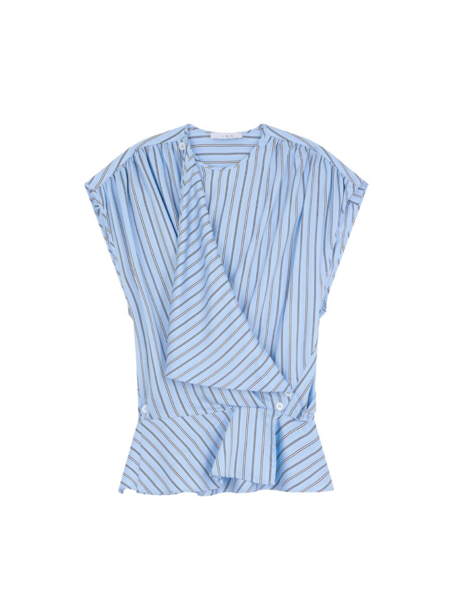 Prachtige top van Iro. Deze top is mouwloos en heeft een schootje. Hij heeft een streepjespatroon en een overslag detail op de voorkant.