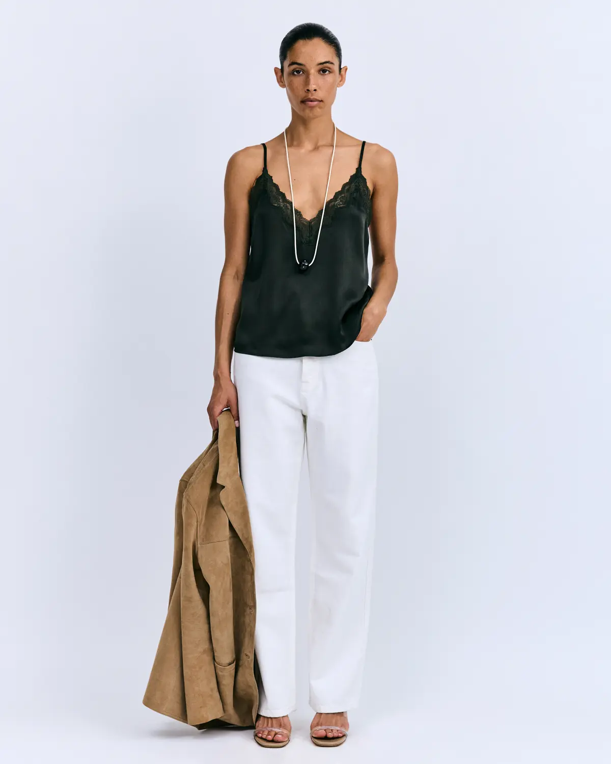 Dit prachtige topje heeft spaghetti bandjes en prachtige kanten details. Combineert heerlijk onder jasjes of blazers, maar ook super leuk als zomer top.