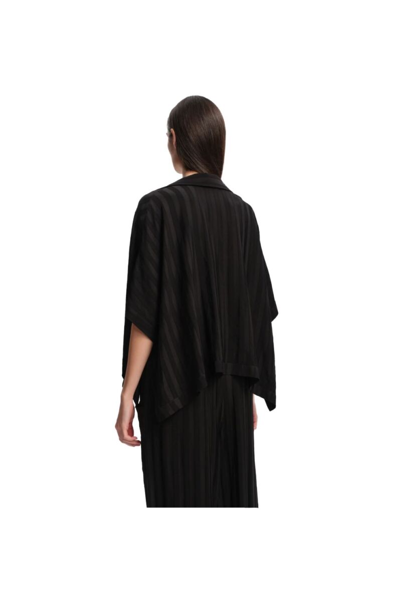 Hele mooie top van Margaux Lonnberg. Het is een losvallende top met een wijde, rechte pasvorm. De top heeft een V-hals met een kleine inkeping en een platte kraag. De mouwen zijn ruim en vallen tot net boven de elleboog. De onderzijde is recht afgewerkt en valt los over de taille.