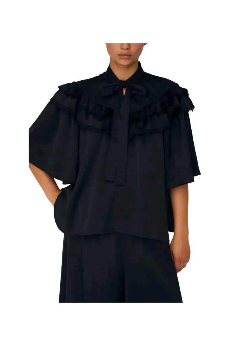 Top Stella Nova / Loose Blouse With Frills Black