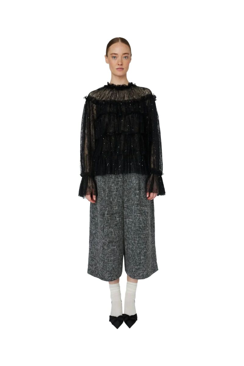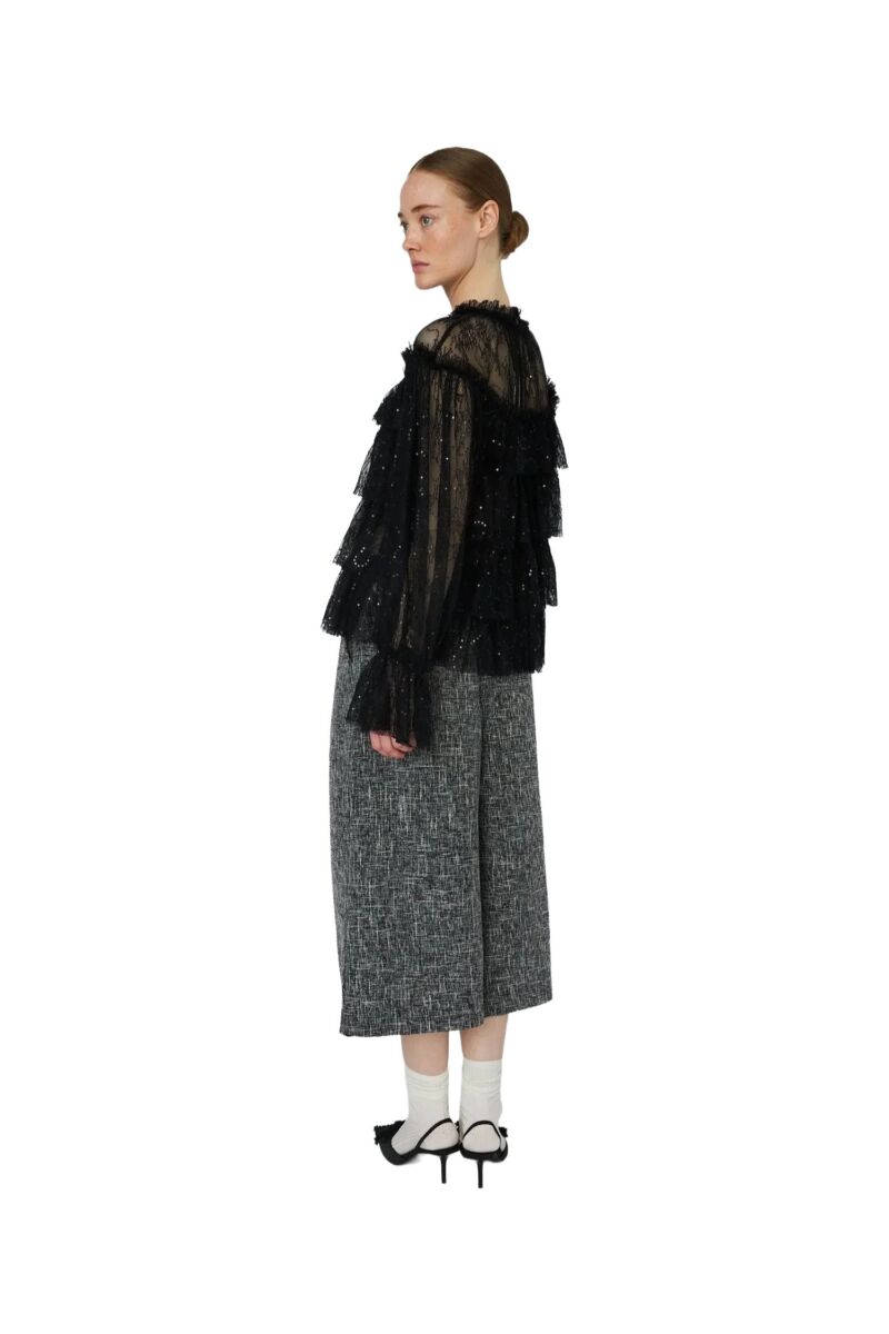 Hoe leuk is dit blousje van Stella Nova! Deze blouse heeft een prachtige kanten stof en super mooie pailletten. Ook heeft deze geweldige blouse een uitlopend mouwtje, ruffels en sluit aan de achterkant met een knoopje. Hij schijnt licht door, dus heel leuk te combineren met een Love Stories bralette eronder.