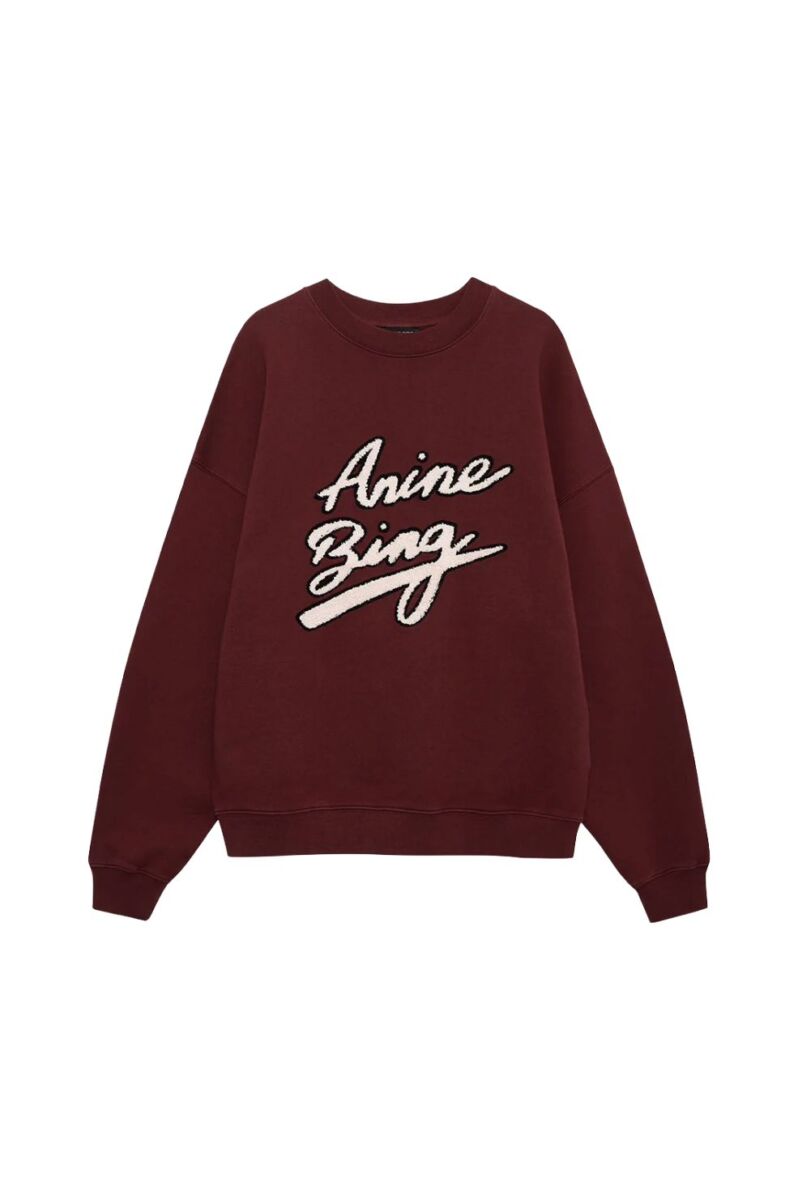 Superleuke trui van Anine Bing. Deze bordeaux sweater heeft het Anine Bing logo op de borst in teddy stof! De truien van Anine Bing zijn bij iedereen favoriet. Te gekke trendy truien die heerlijk zitten!