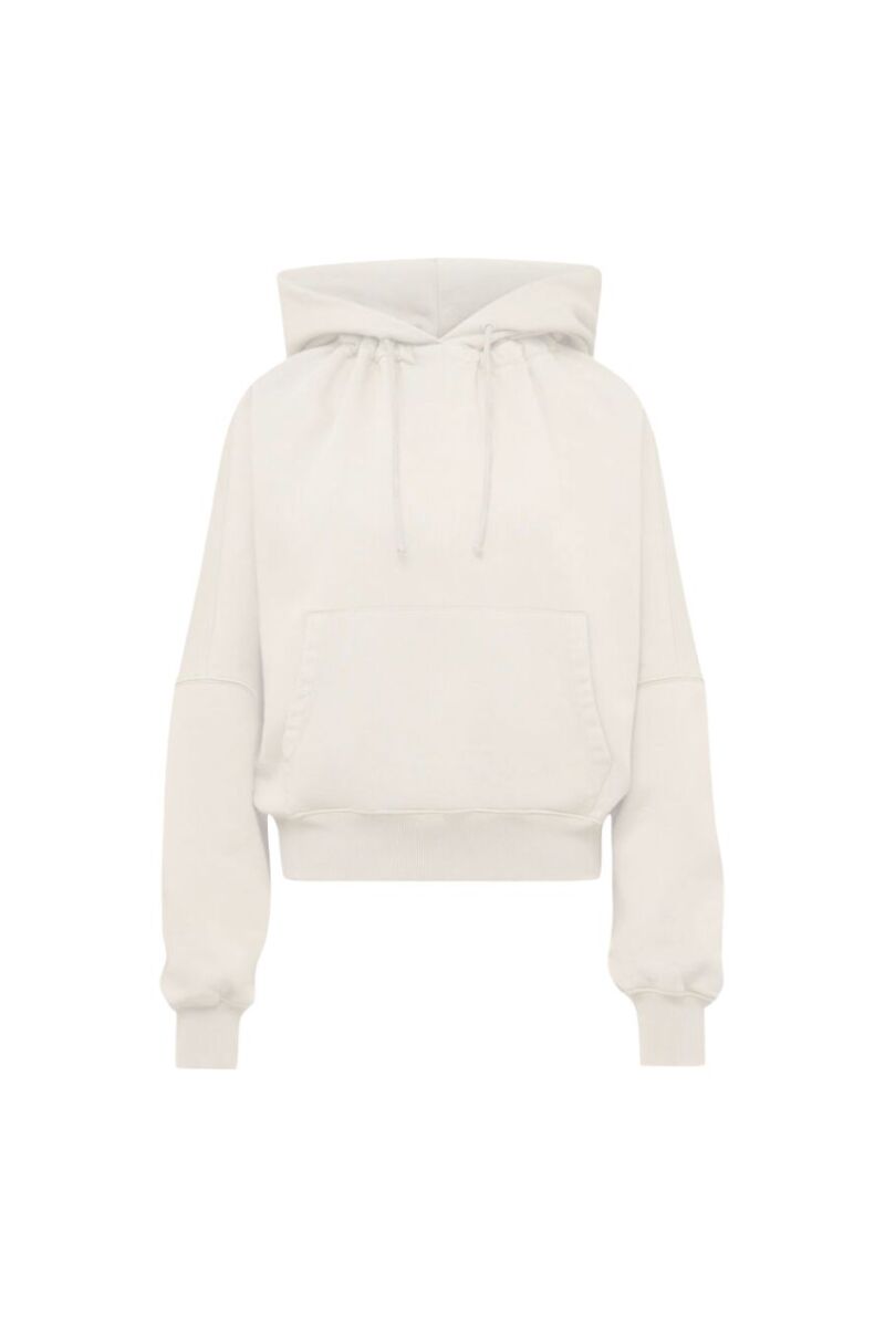 Superfijne trui van Drykorn. Deze trui is beige en heeft een capuchon met touwtjes. Er zit een elastiek bij de hals, wat een heel leuk effect geeft. Perfecte trui voor wanneer je zin hebt in een comfy outfit, maar toch er leuk uit wilt zien!